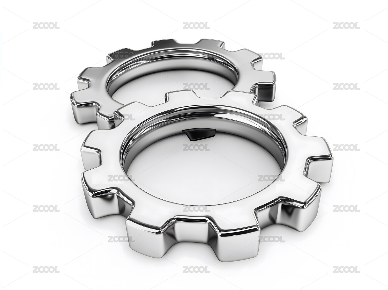 两个相互啮合的金属齿轮