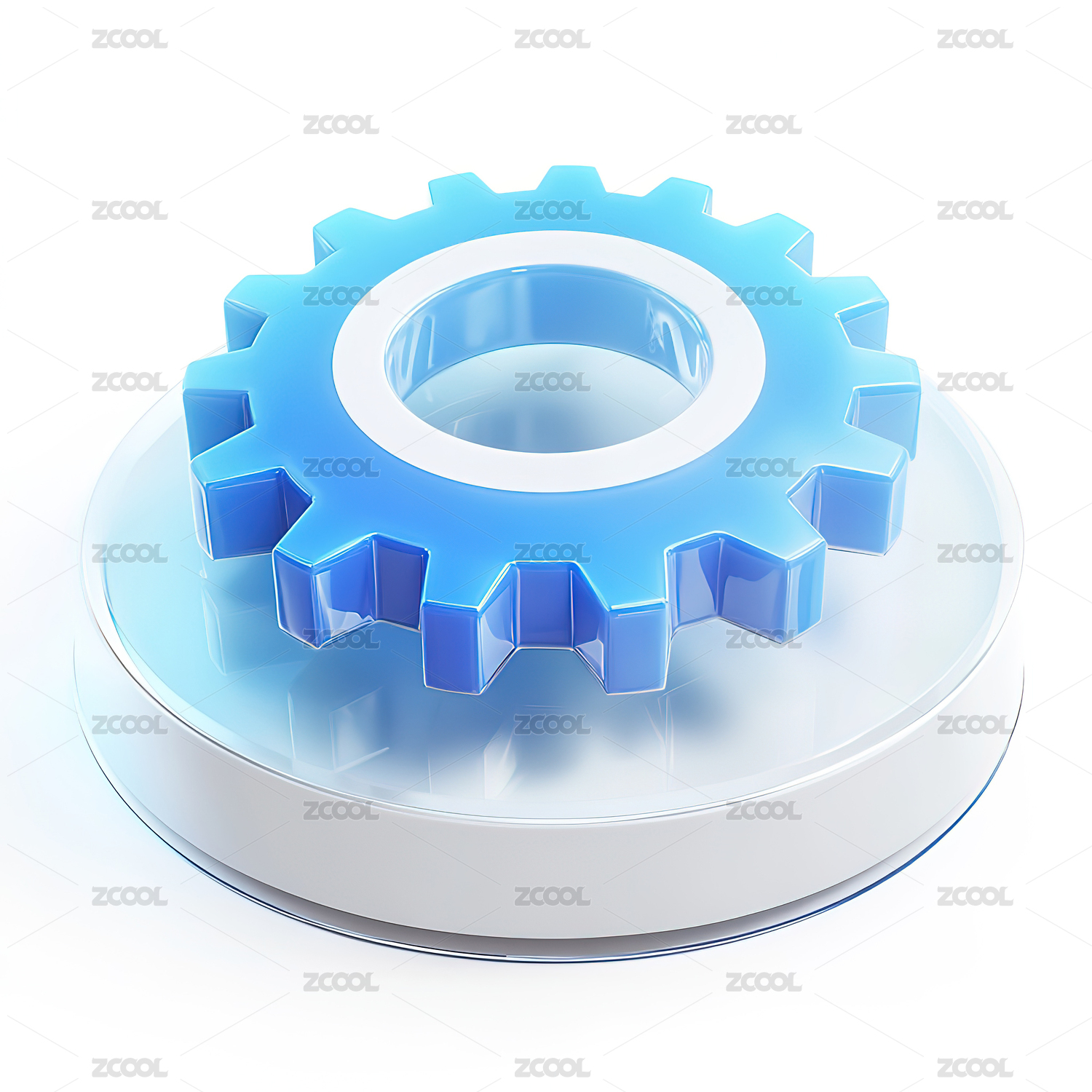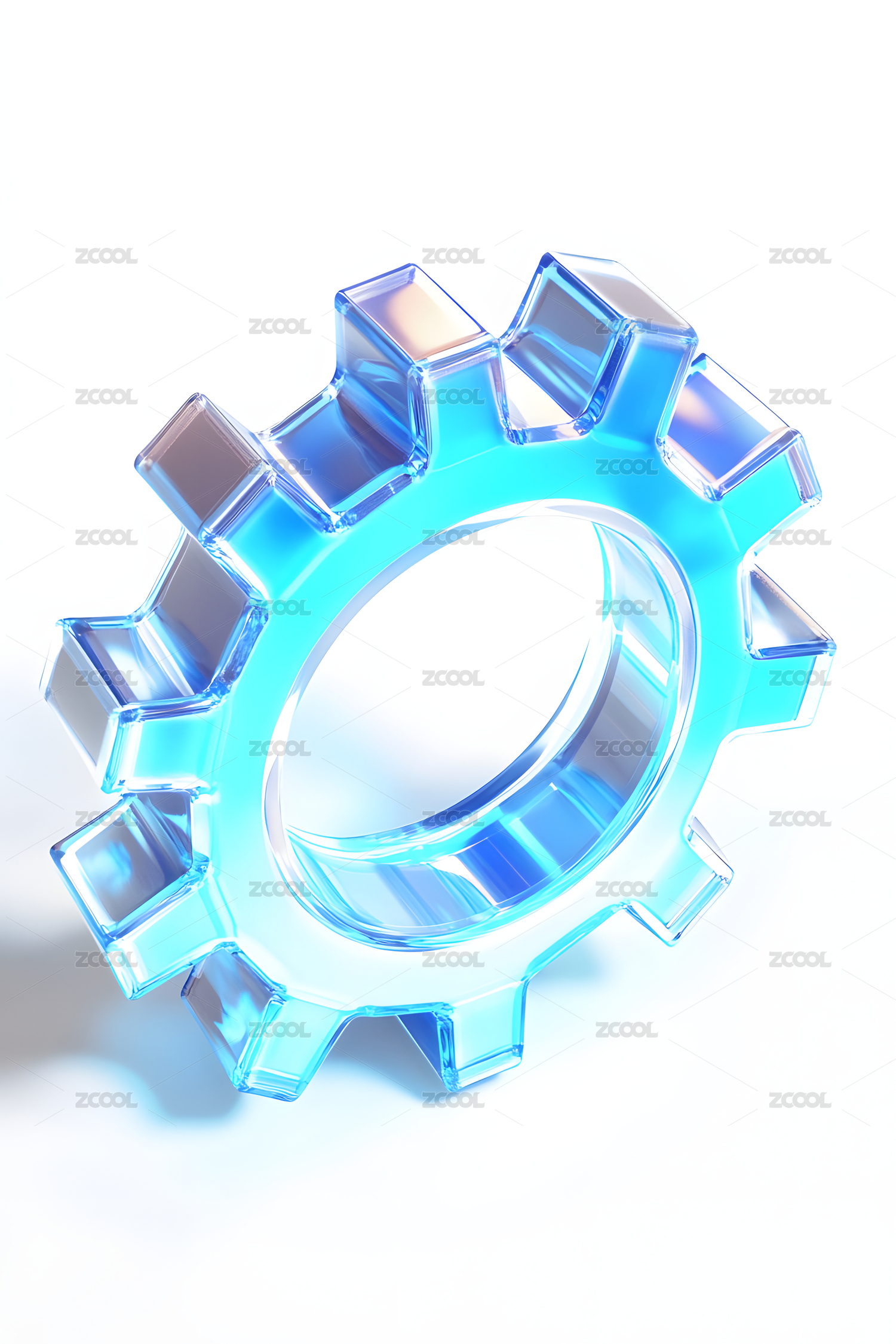 白色背景前的透明玻璃齿轮图标