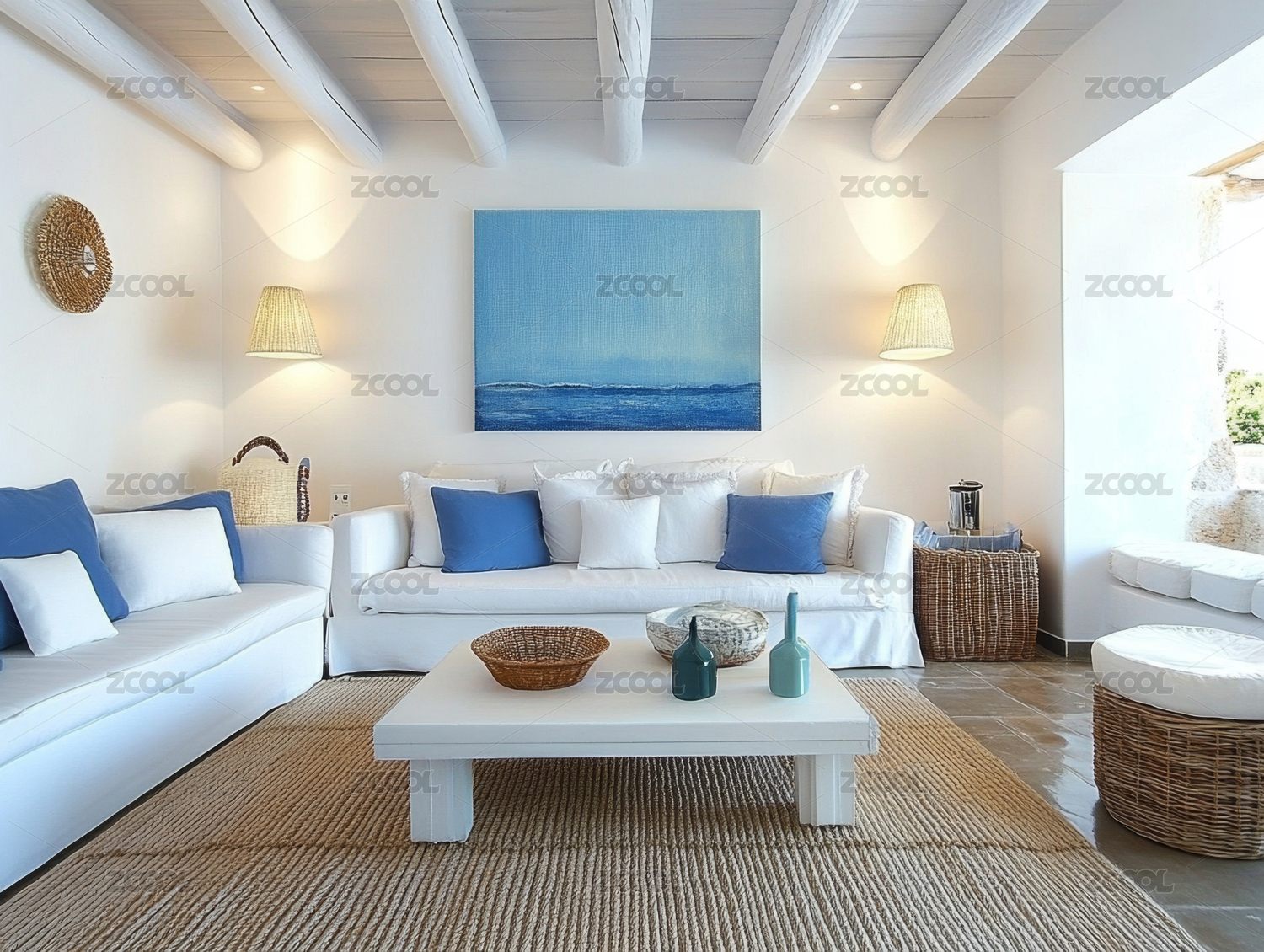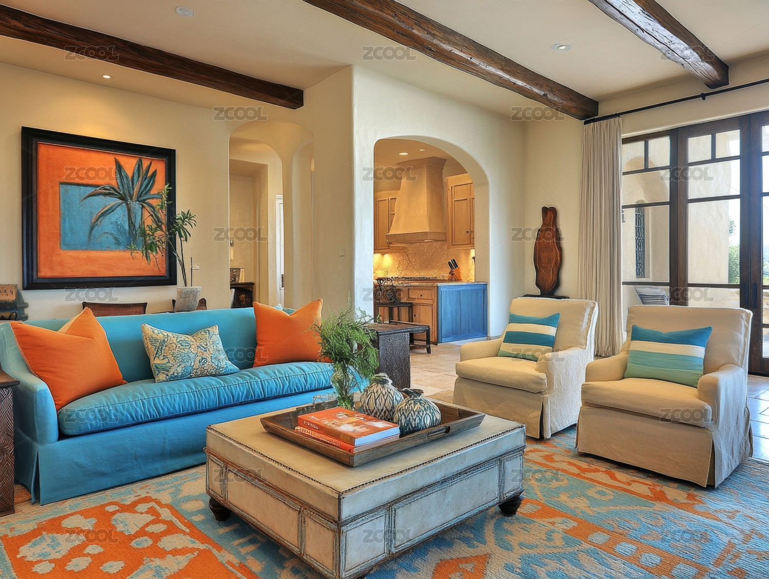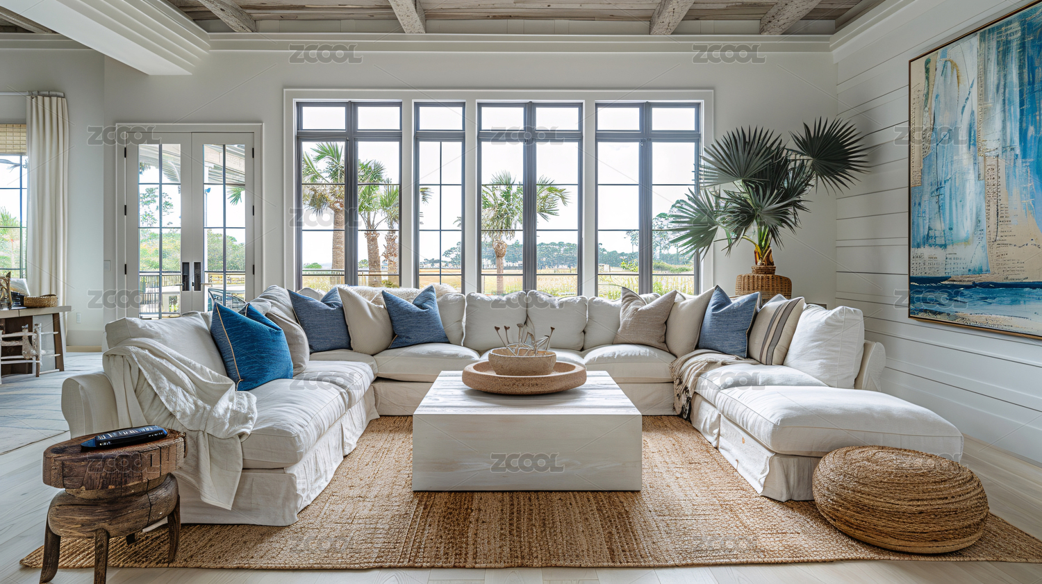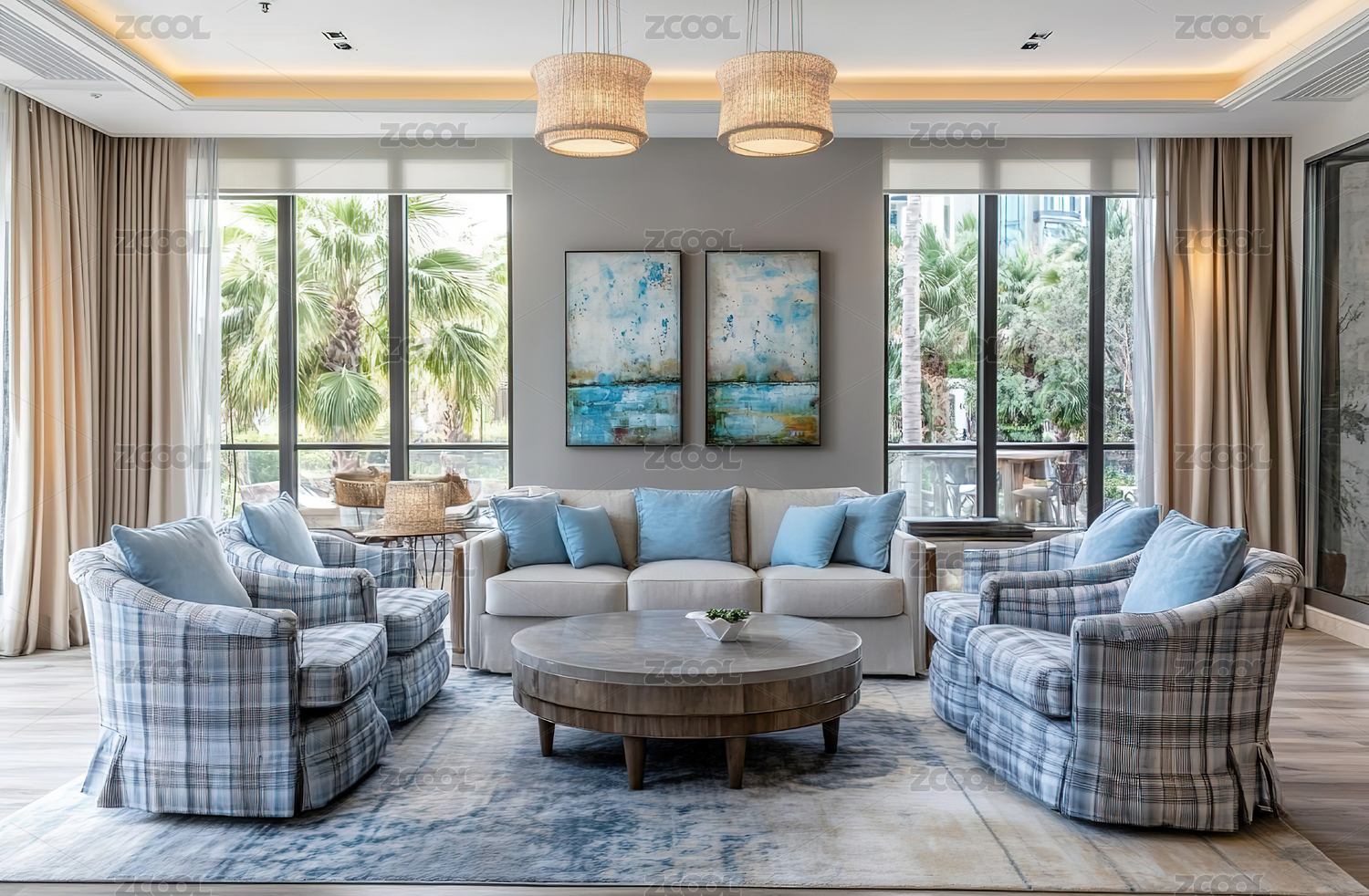 现代,装饰,客厅,沙发,桌子,风格,舒适,自然,蓝色,颜色