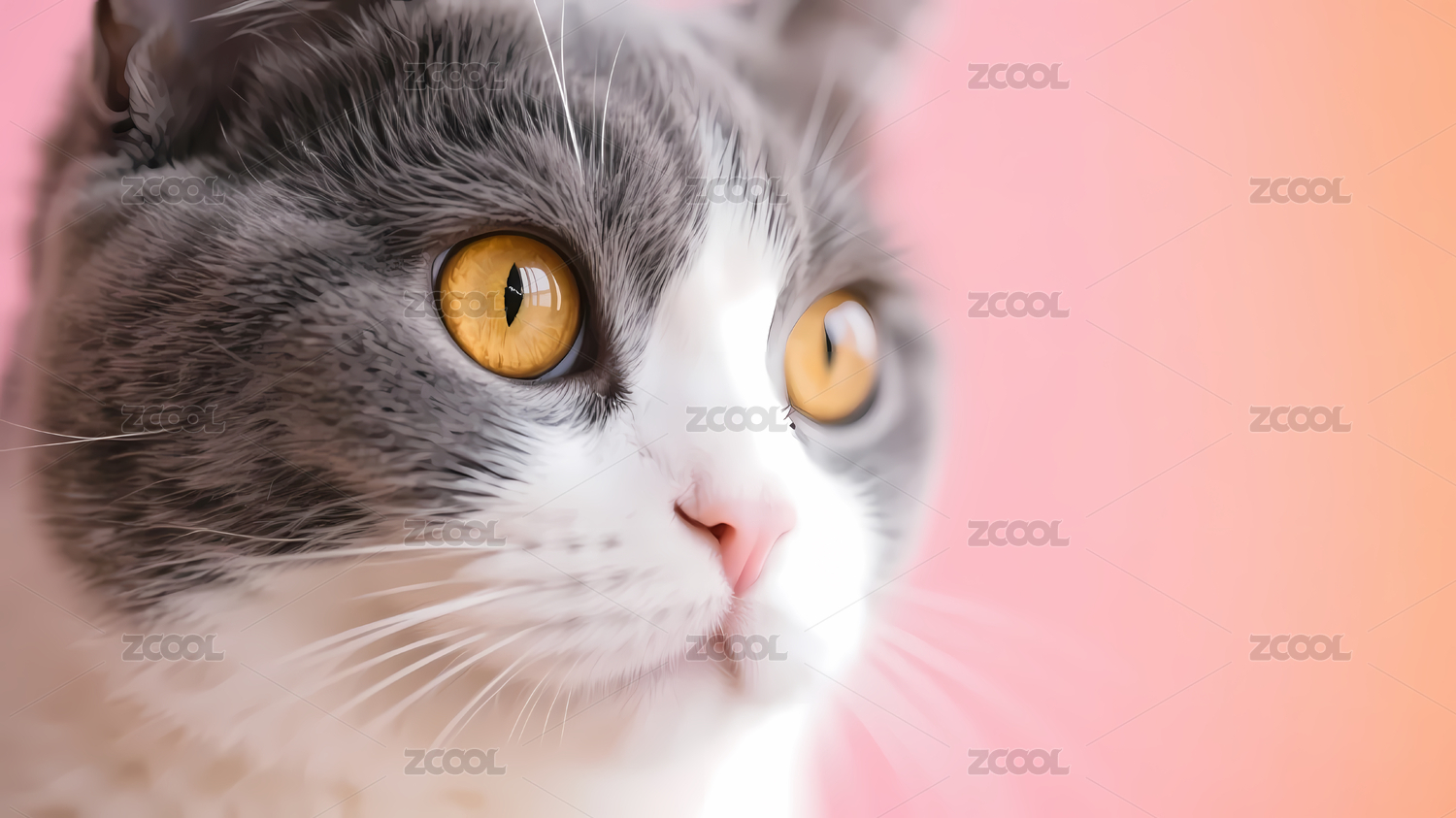 蓝色,主体,白色,粉色,细节,黄色,眼睛,渐变,猫,独特