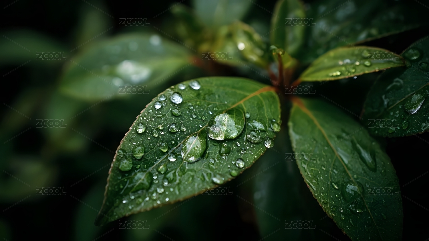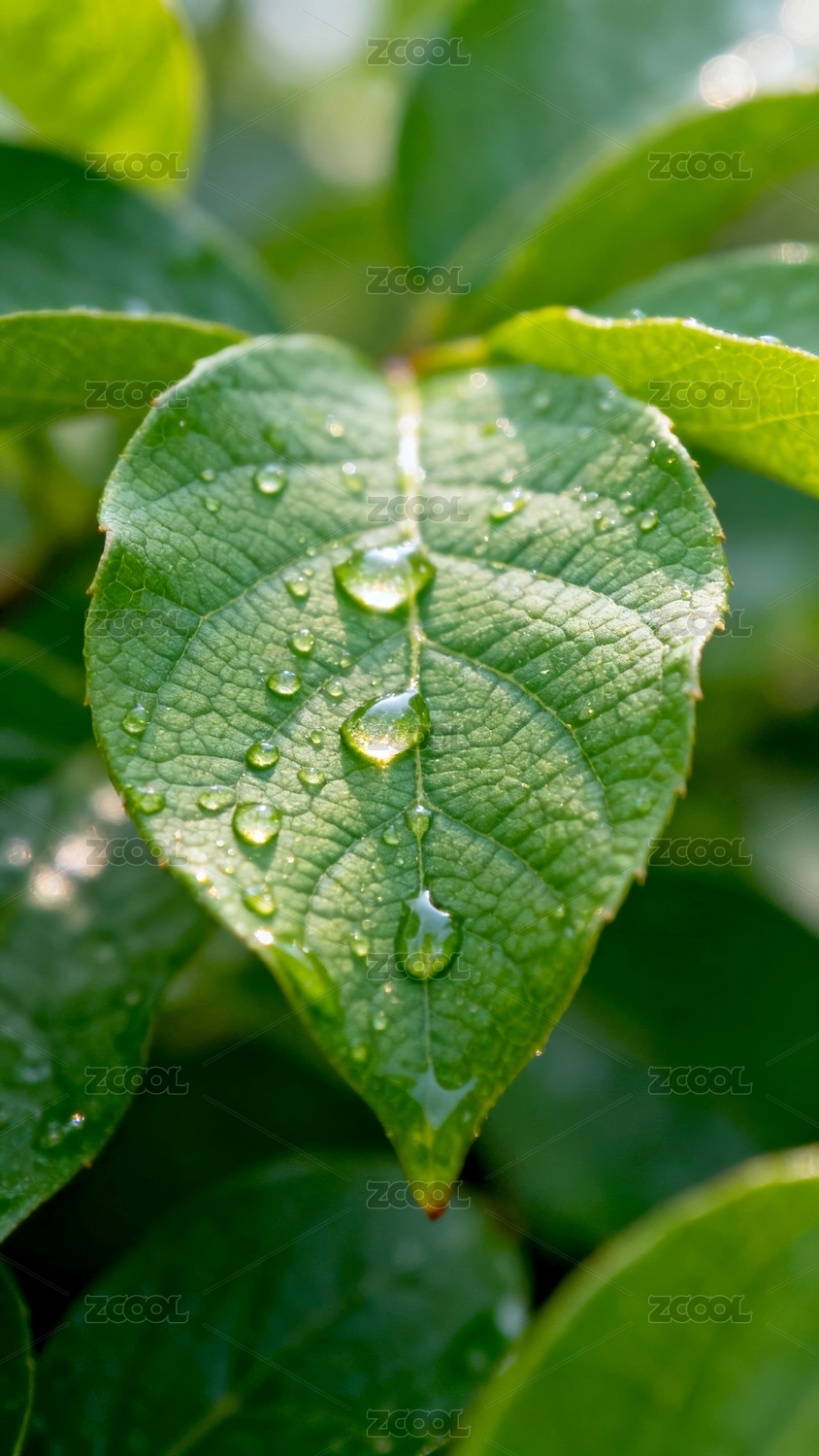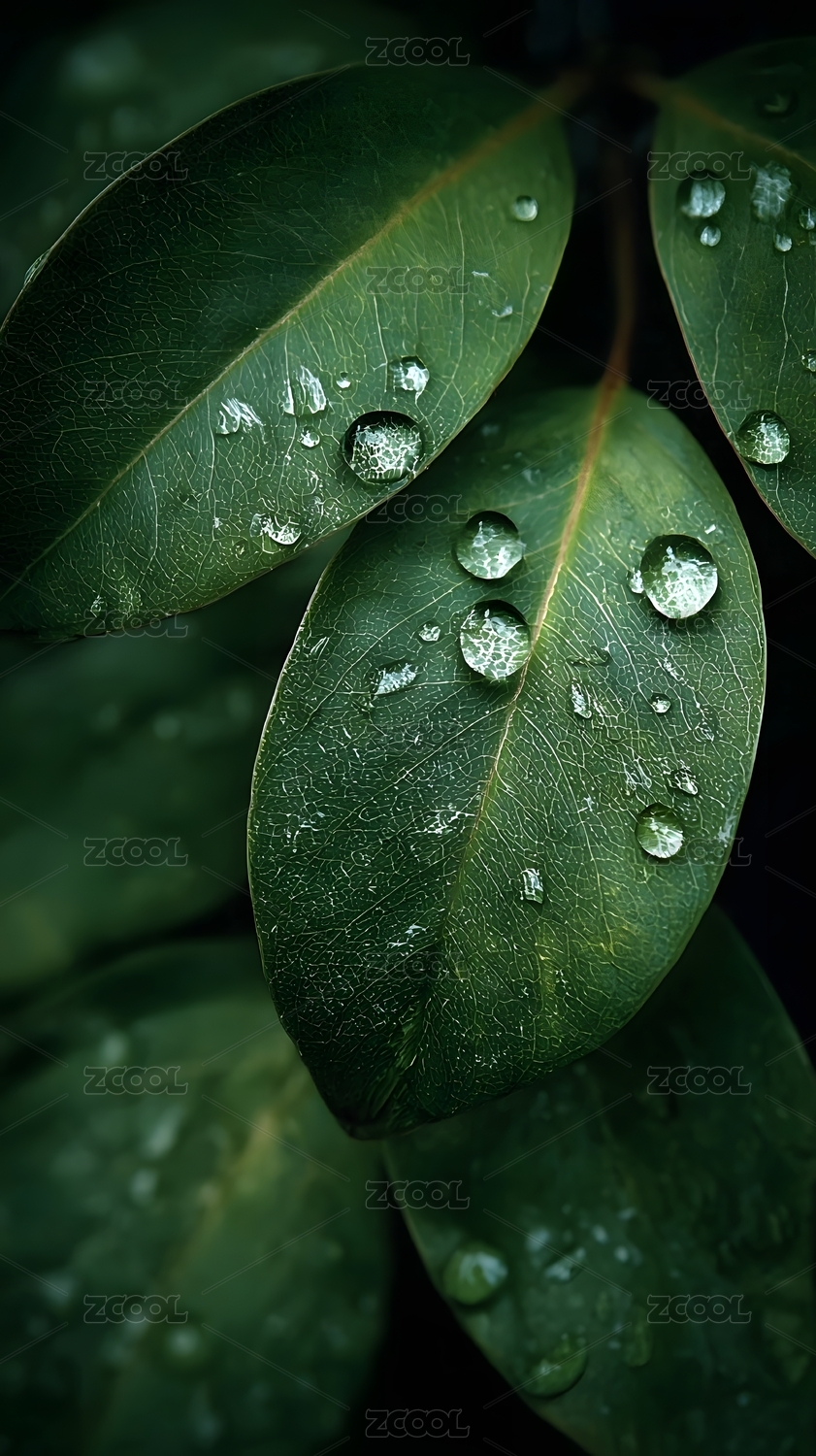 绿叶水珠清新自然特写场景