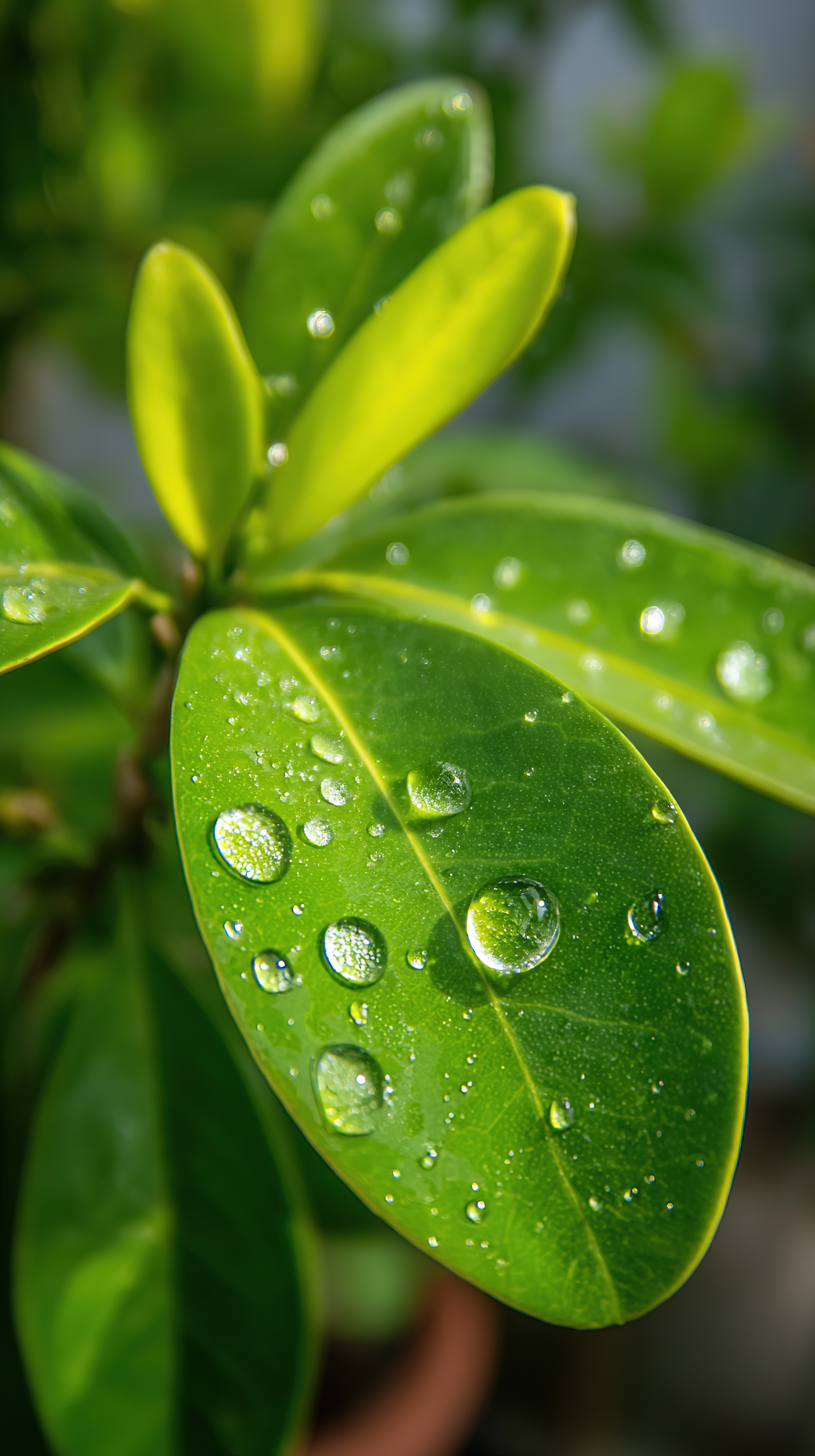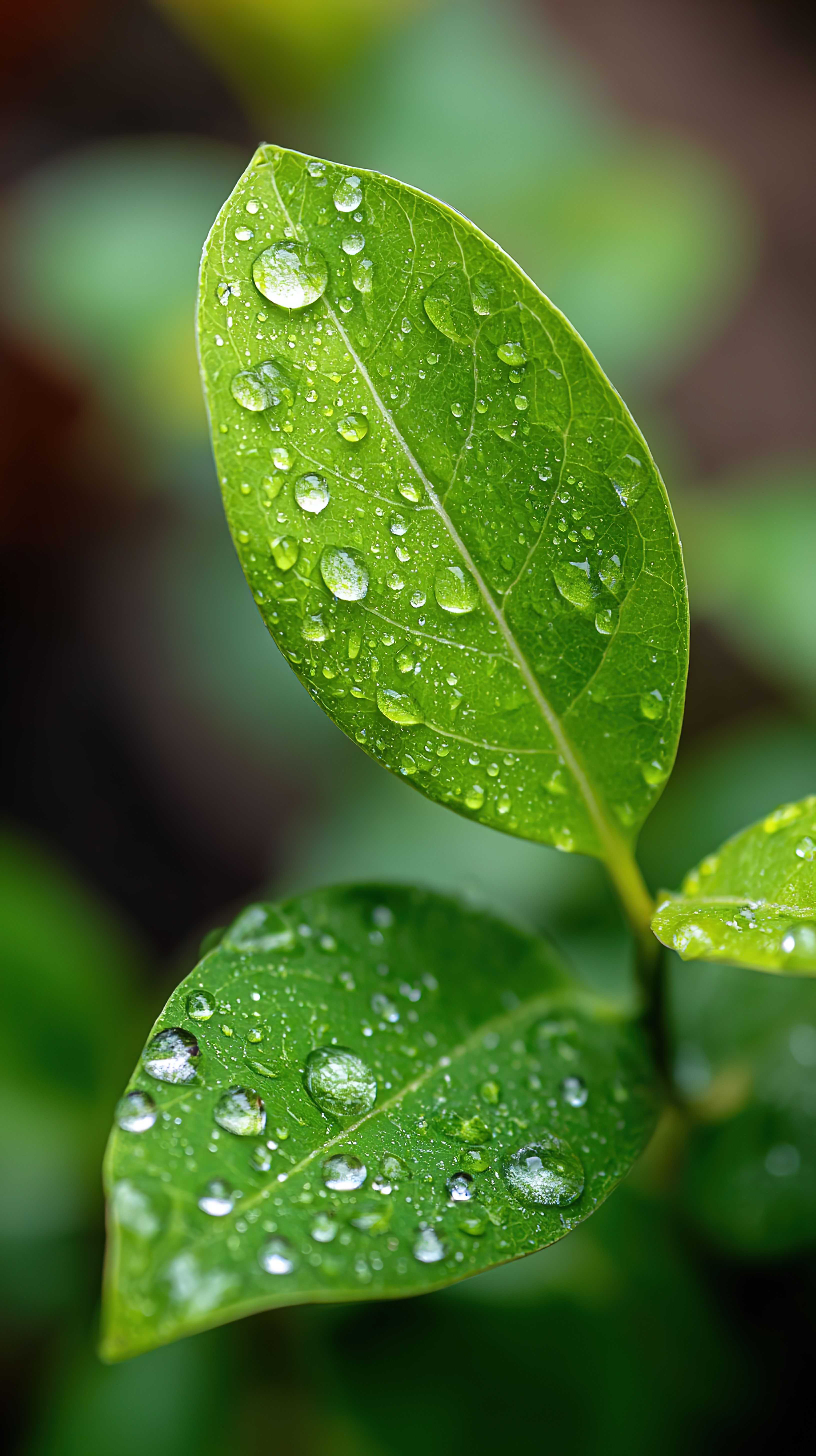 清新绿叶上的晶莹水珠