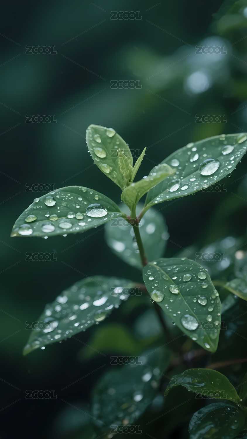 带水珠的嫩绿植物枝叶