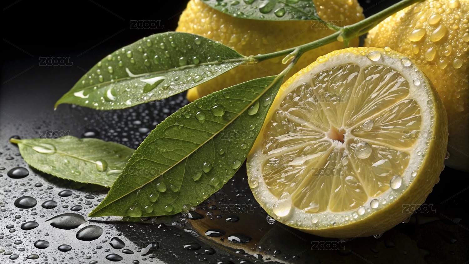 自然,黄色,清新,植物,水果,明亮,特写,柠檬,绿叶,鲜绿