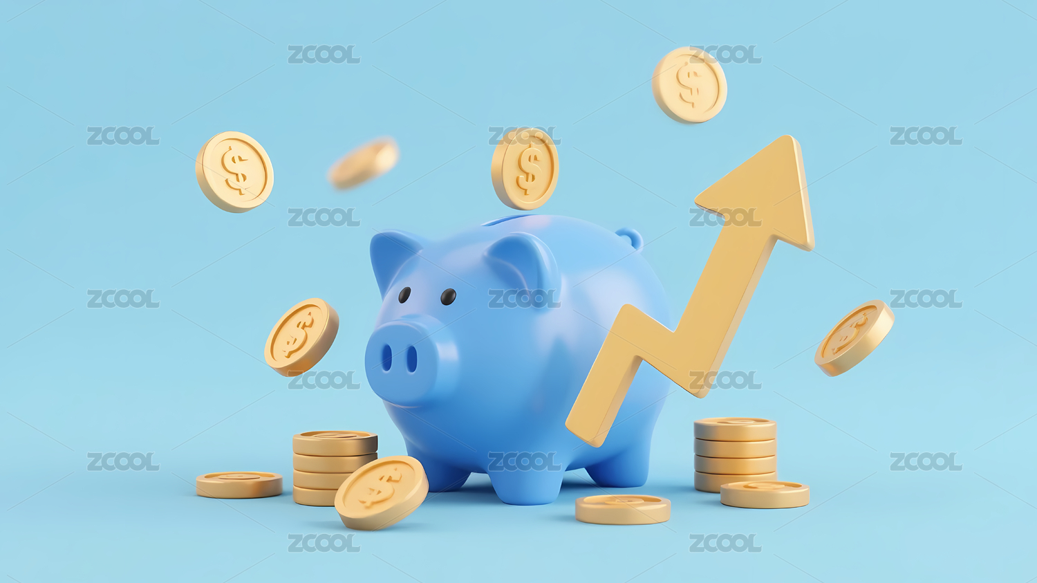 黄色,蓝色,金色,箭头,浅蓝,存钱罐,硬币,投币,财富,理财