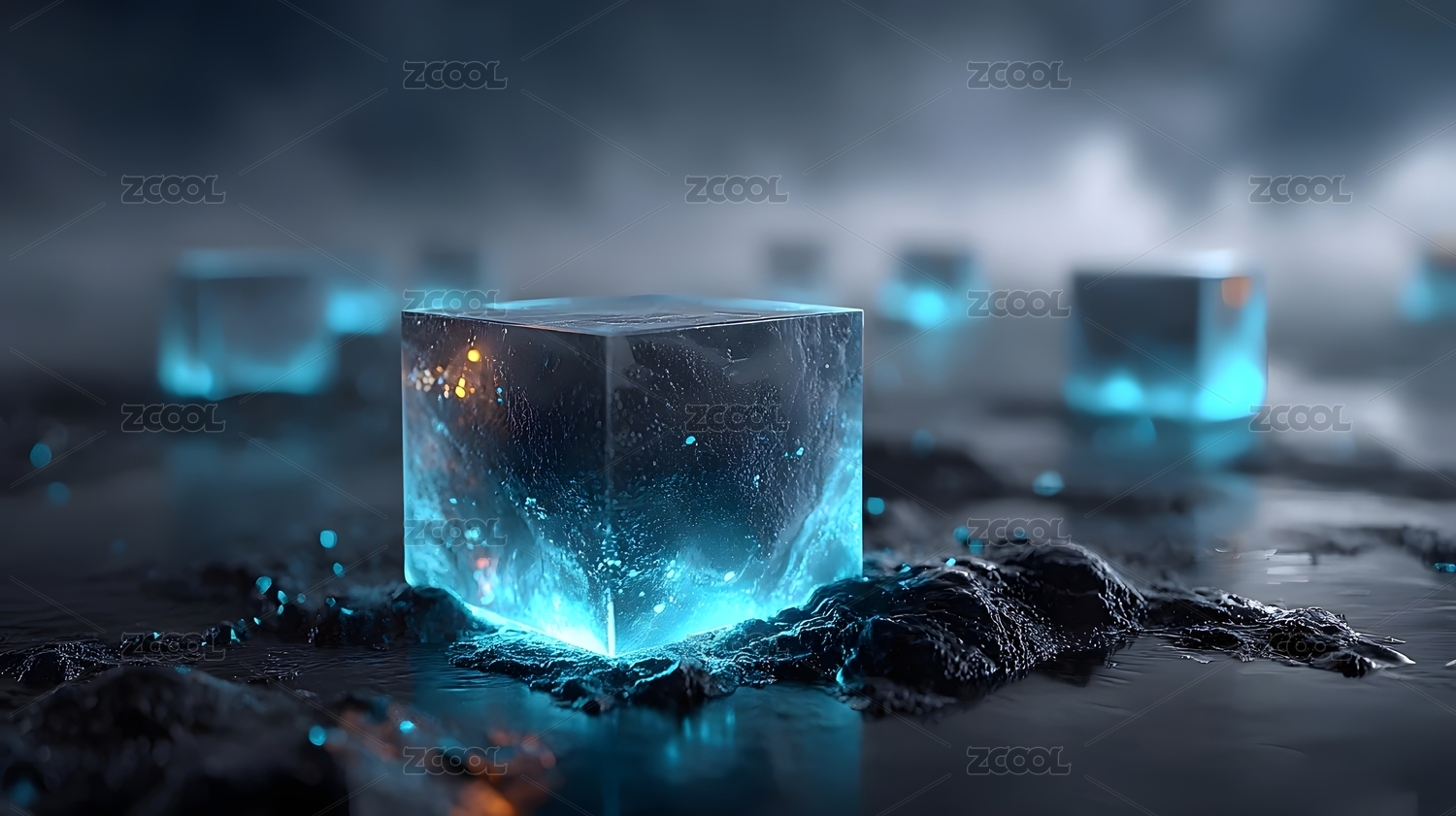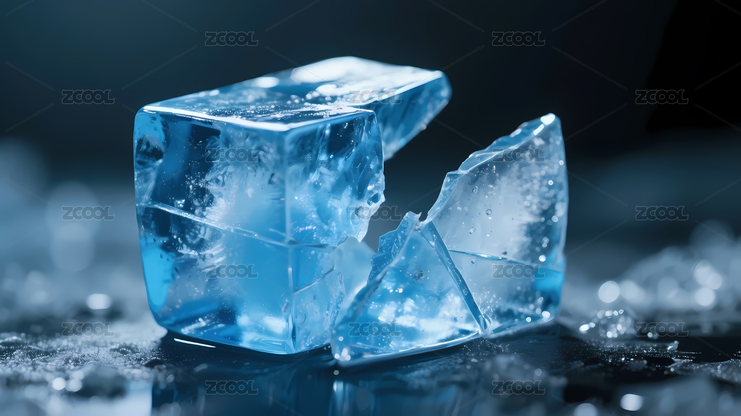 蓝色,白色,深色,散落,水,透明,烟雾,地面,冰块,冷