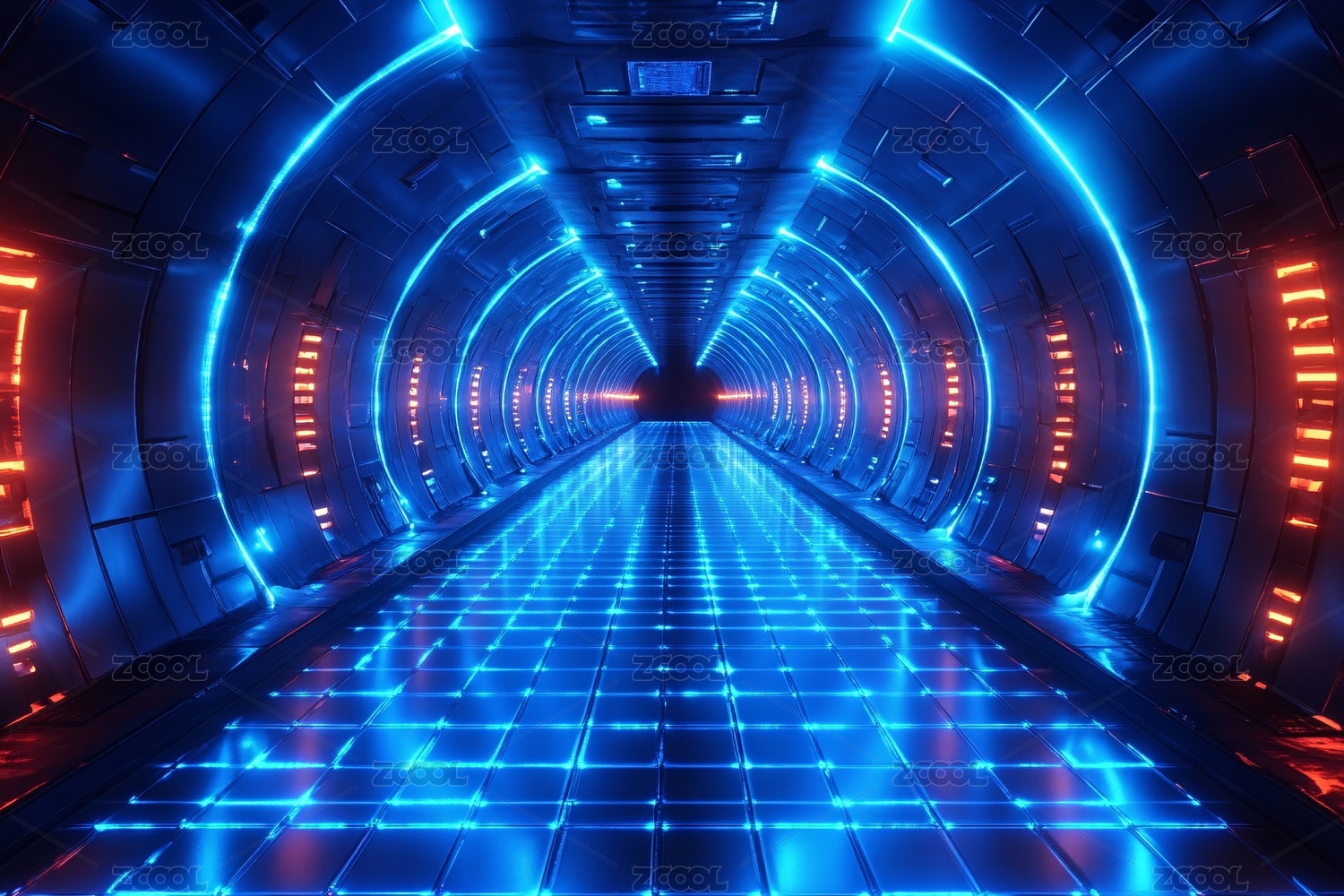 隧道,光效,科幻,未来感,蓝色,橙色,矢量,场景,插画,科技