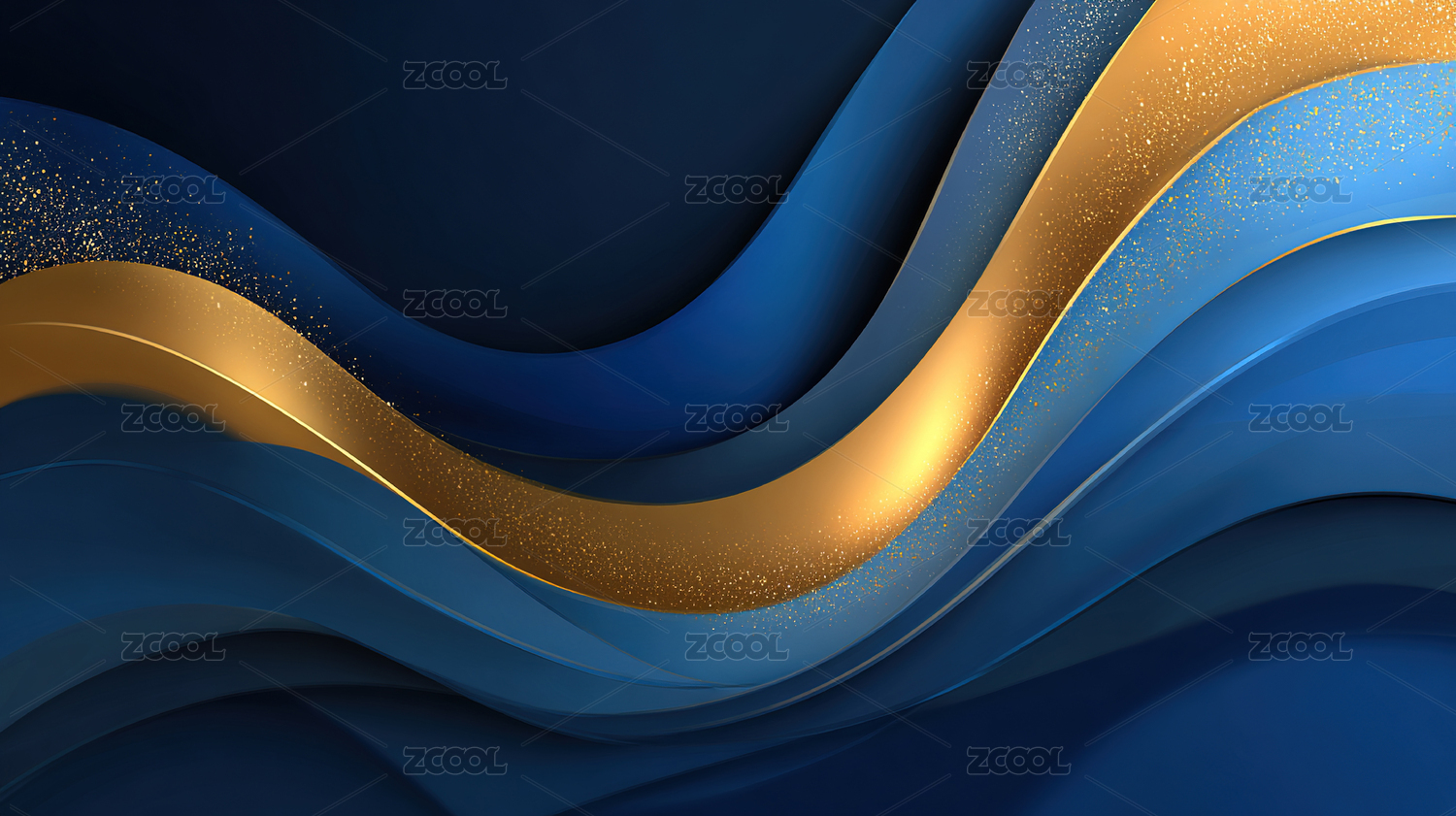 豪华蓝色和金色抽象背景,抽象闪亮的波浪设