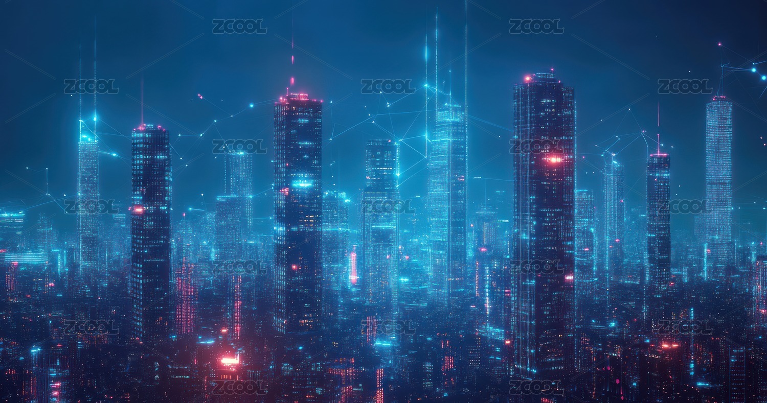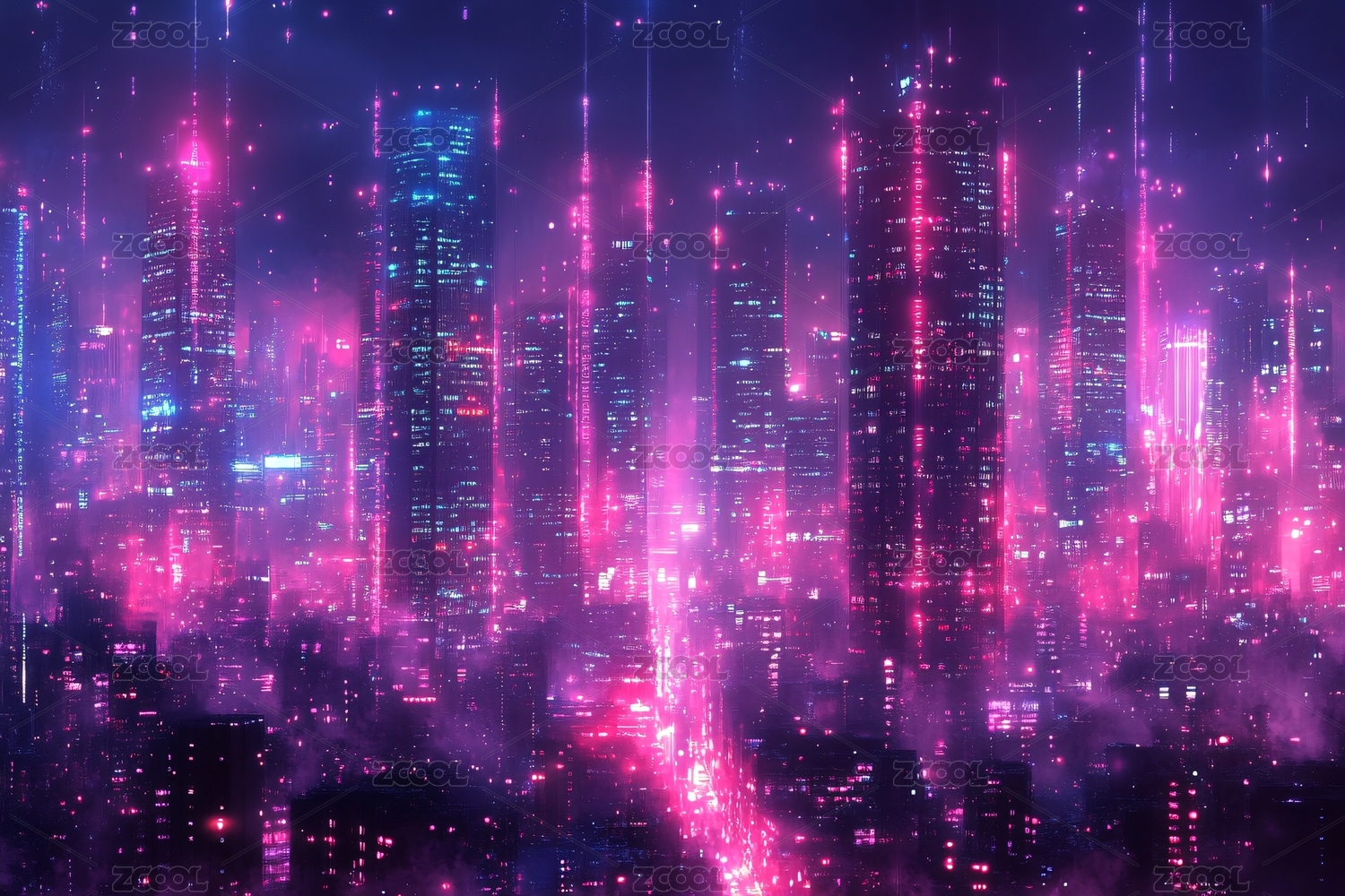 城市,夜景,霓虹,高楼,插画,科幻,未来感,绚丽,光影,矢量