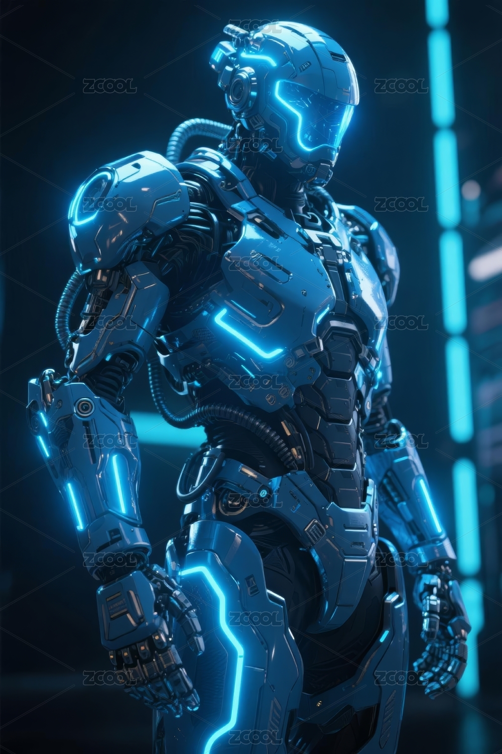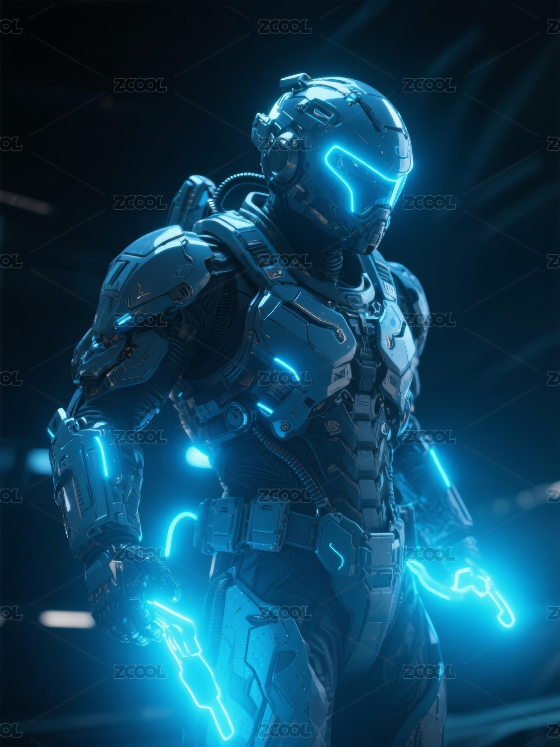 机器人,未来,科技,酷炫,头盔,灯光,机械,科幻,形象,插画