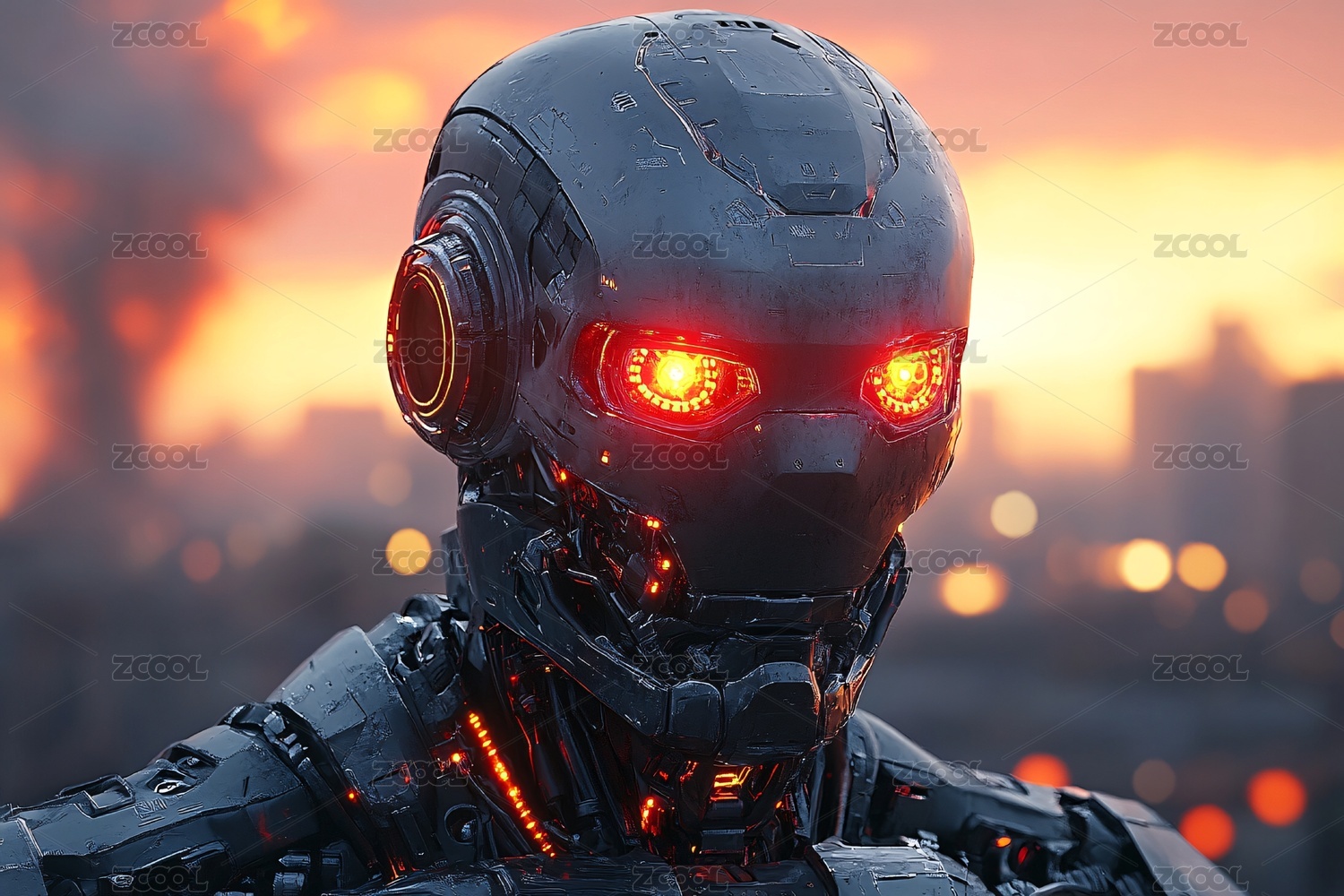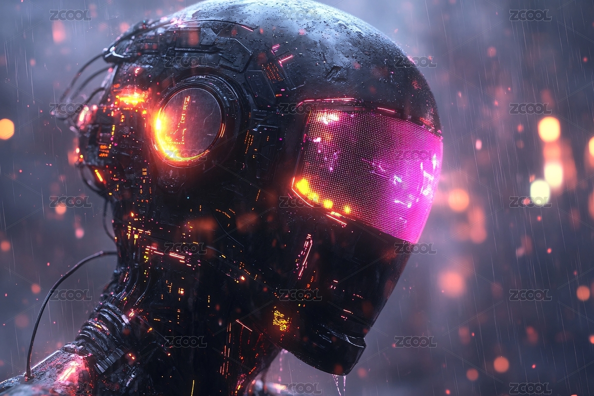 机器人,头部,科幻,机械,光影,插画,未来感,科技,元素,背景