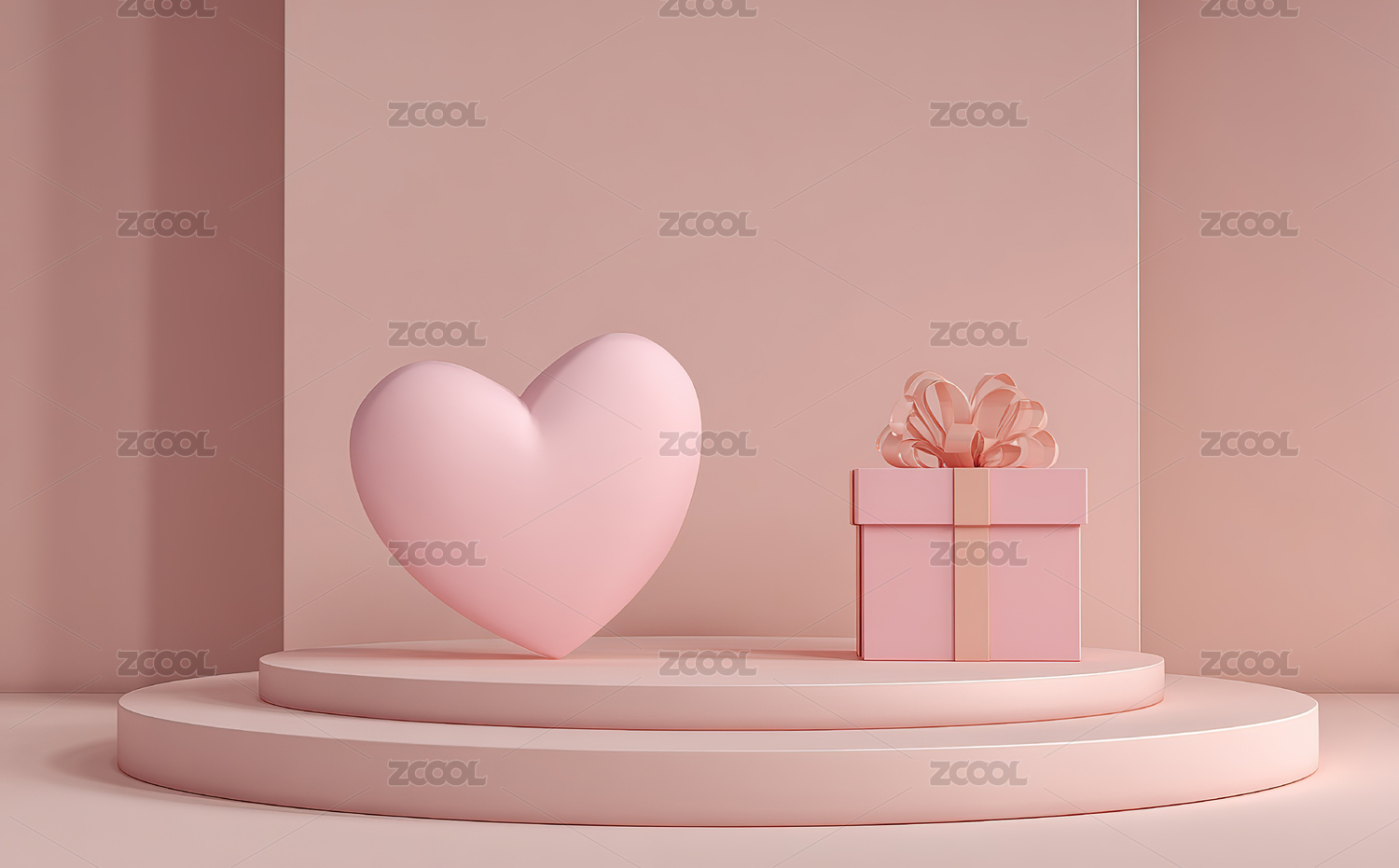 粉红色背景下心形展台