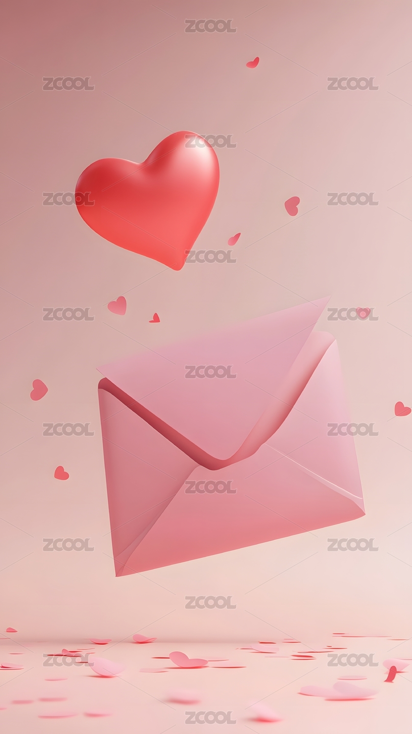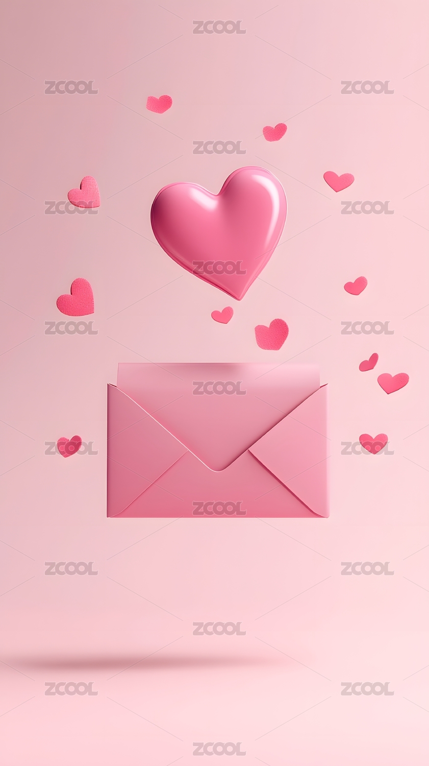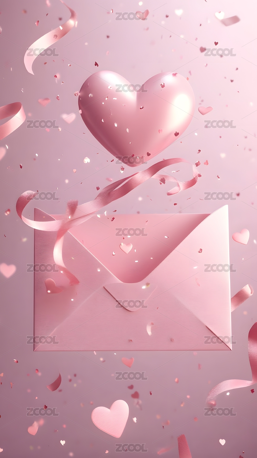 信封,心形,粉色,浪漫,爱情,情人节,表白,礼物,祝福,爱意