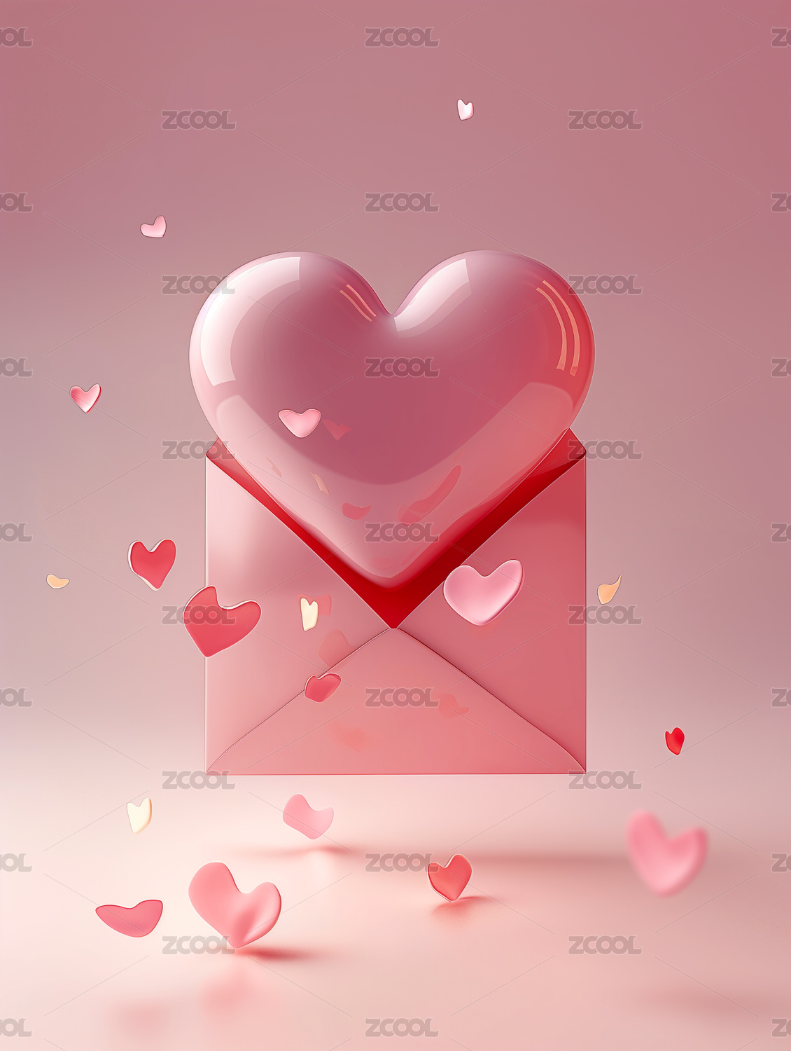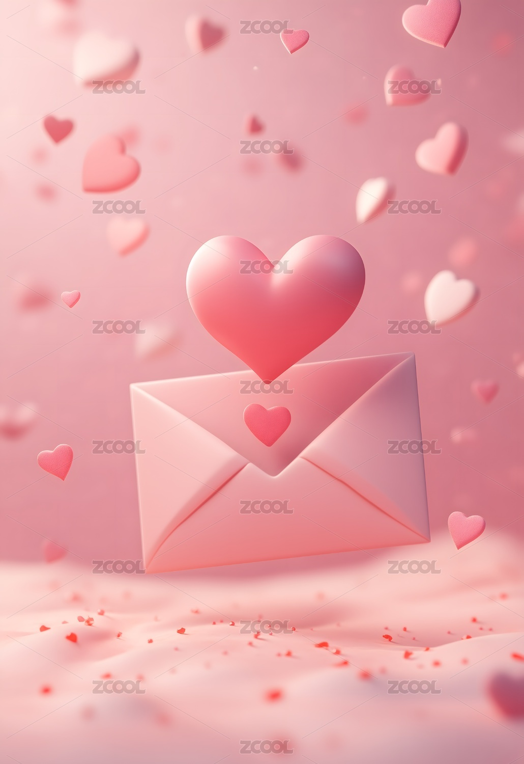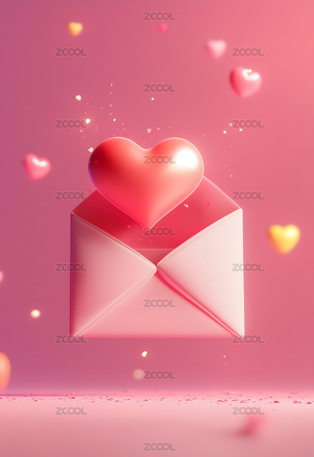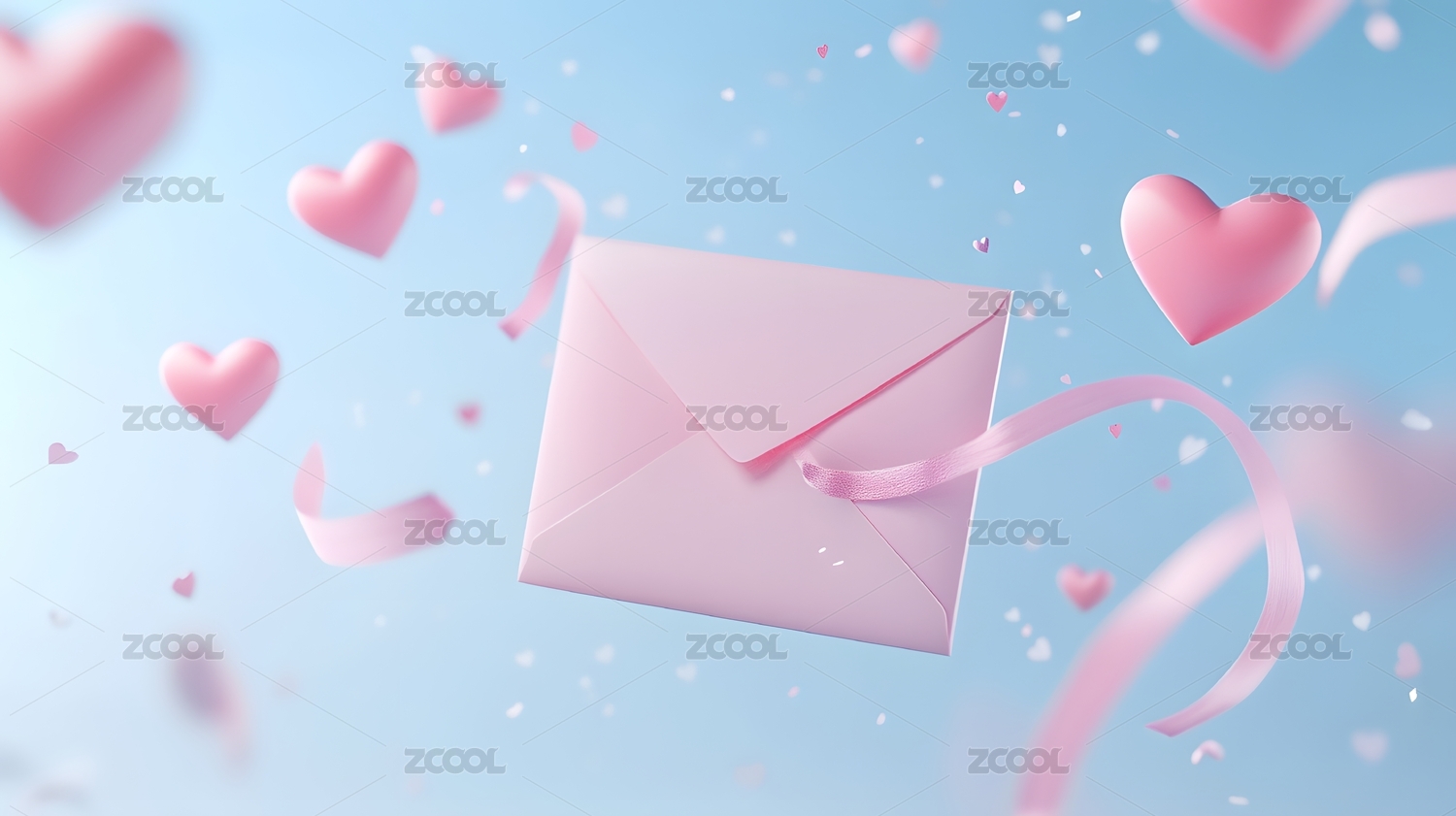 信封,心形,粉色,浪漫,爱情,情人节,表白,礼物,祝福,爱意