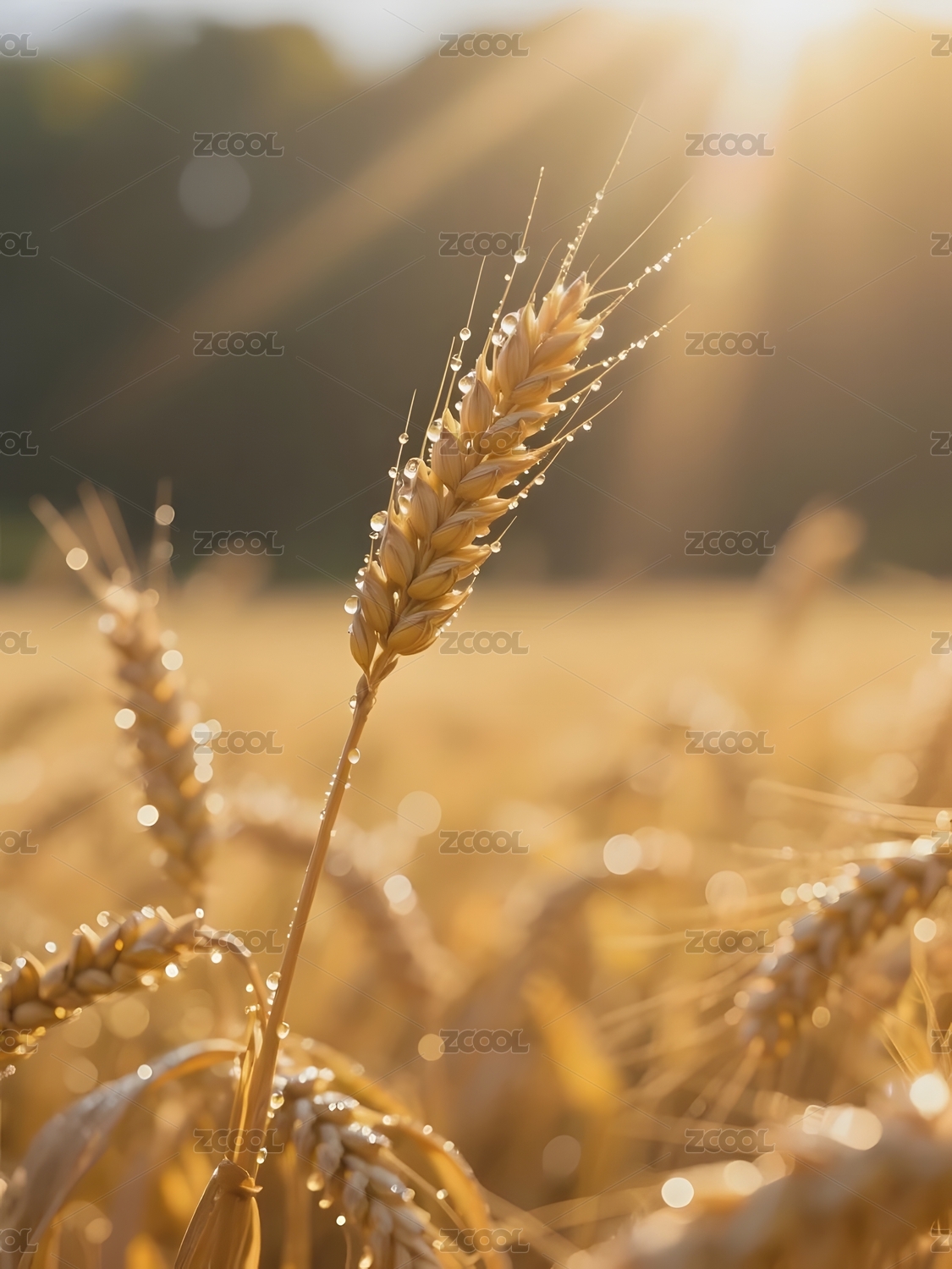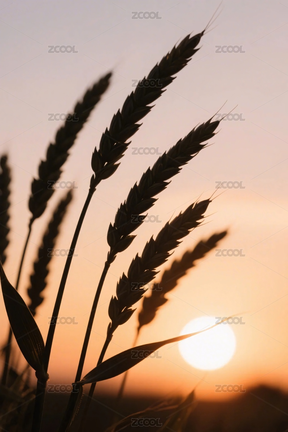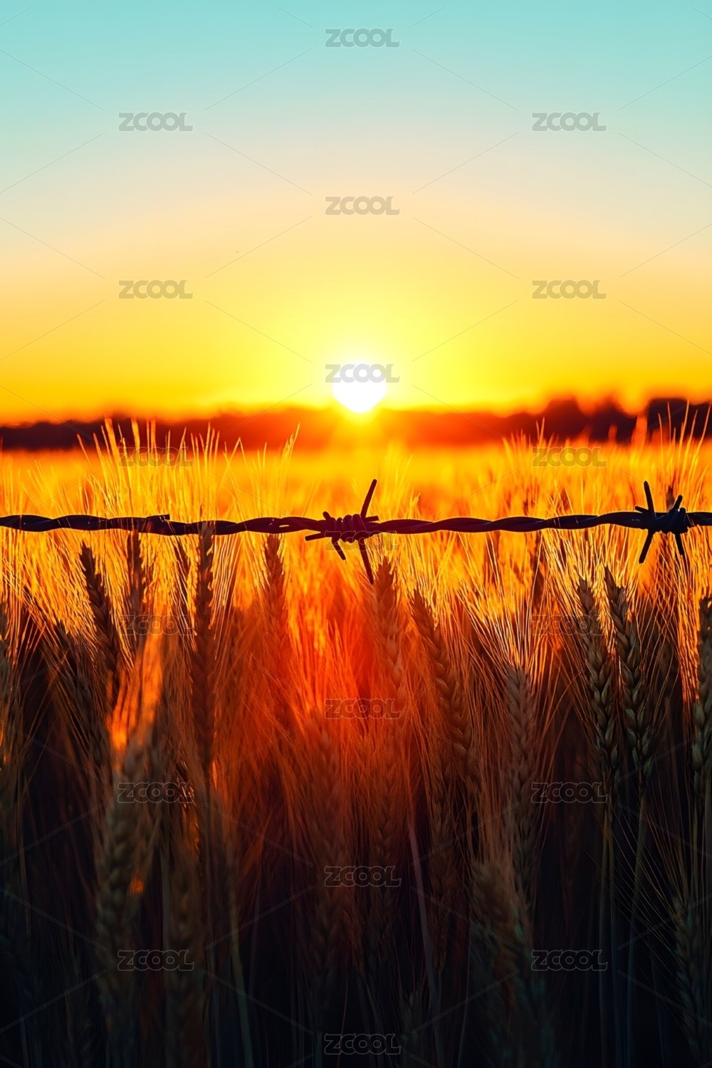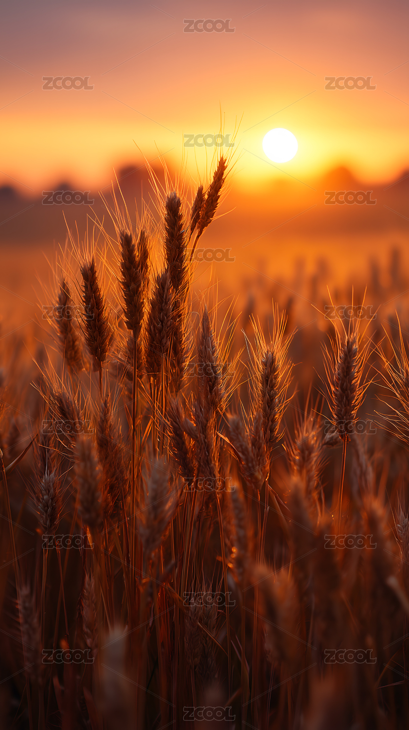 自然,景色,温暖,夕阳,麦浪,金黄,火红,田野,落日,丰收