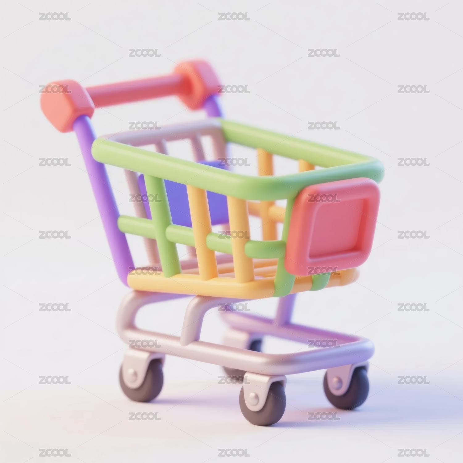 柔和配色的可爱三维风格购物车图标