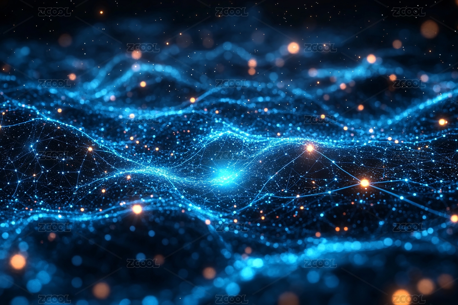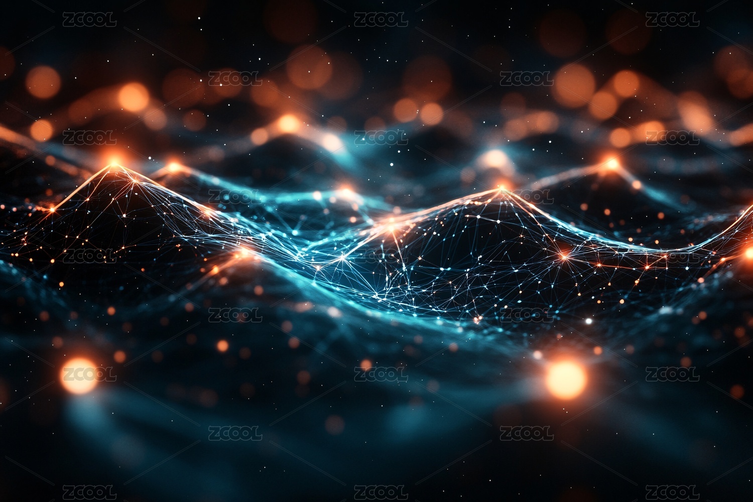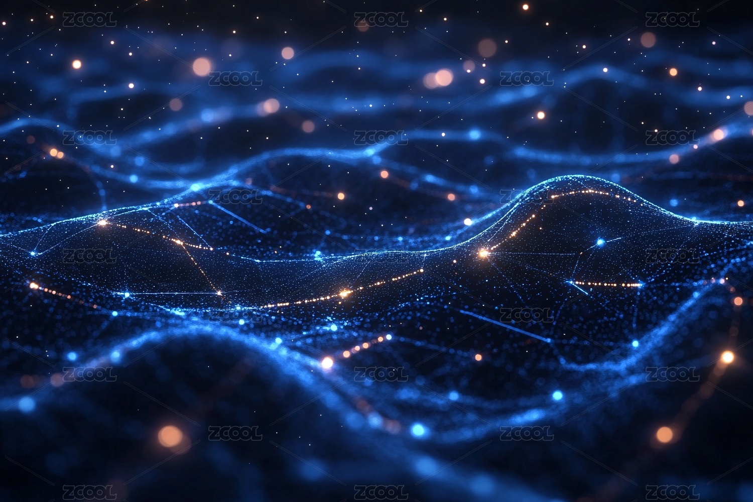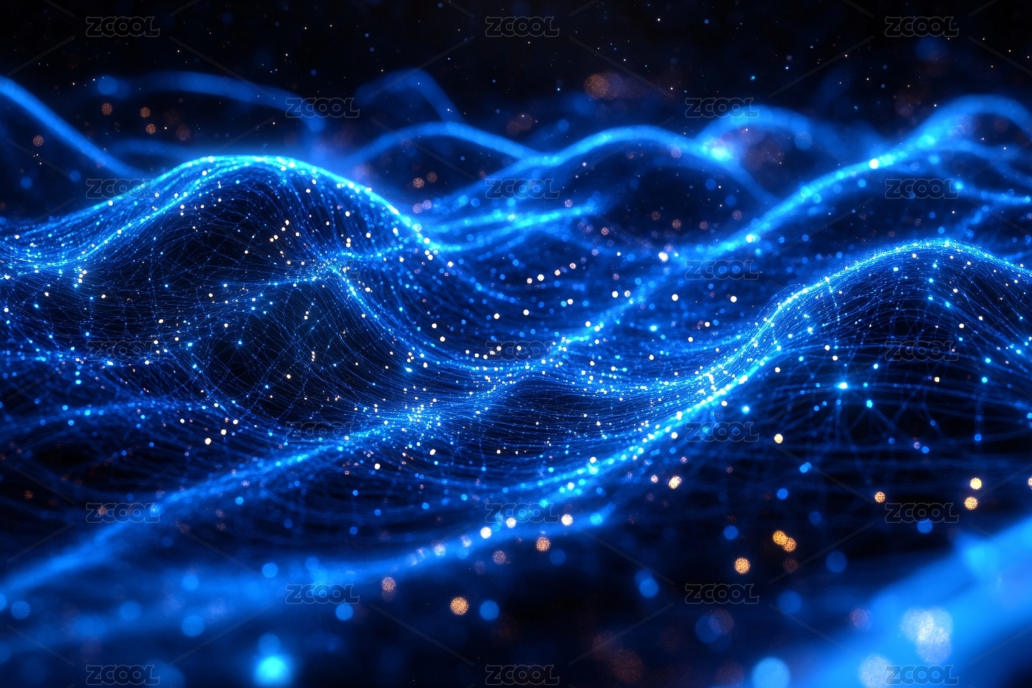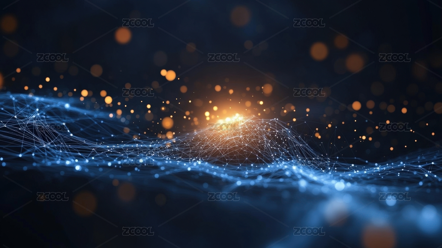 梦幻蓝橙粒子波浪背景