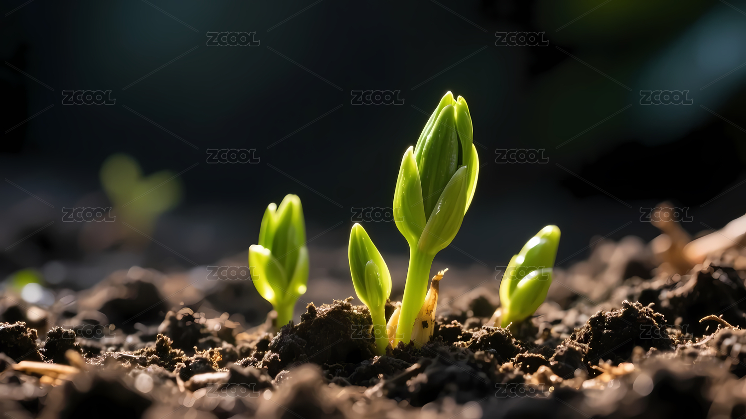 嫩绿,自然,生长,植物,生机,新芽,破土,灰色,地面,景观
