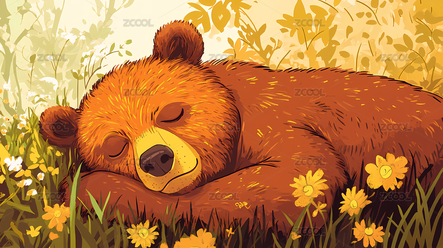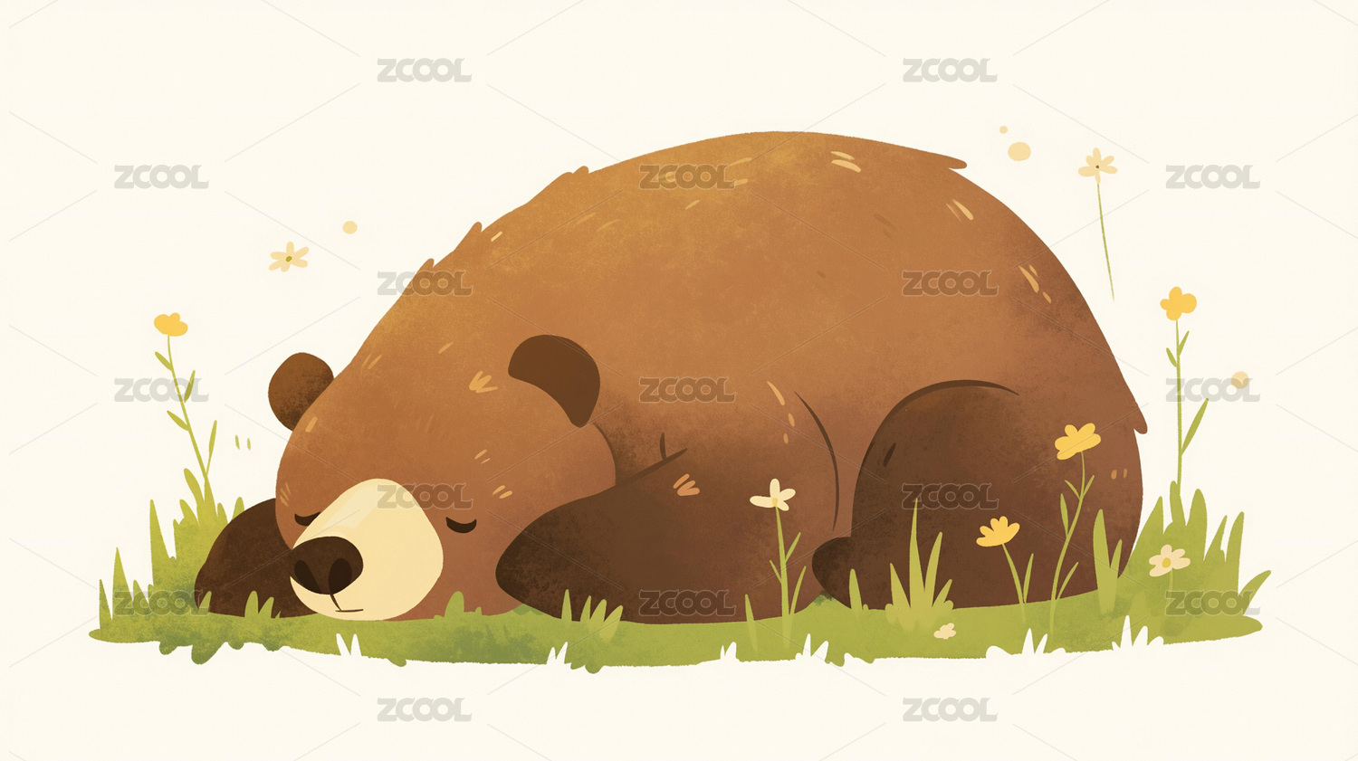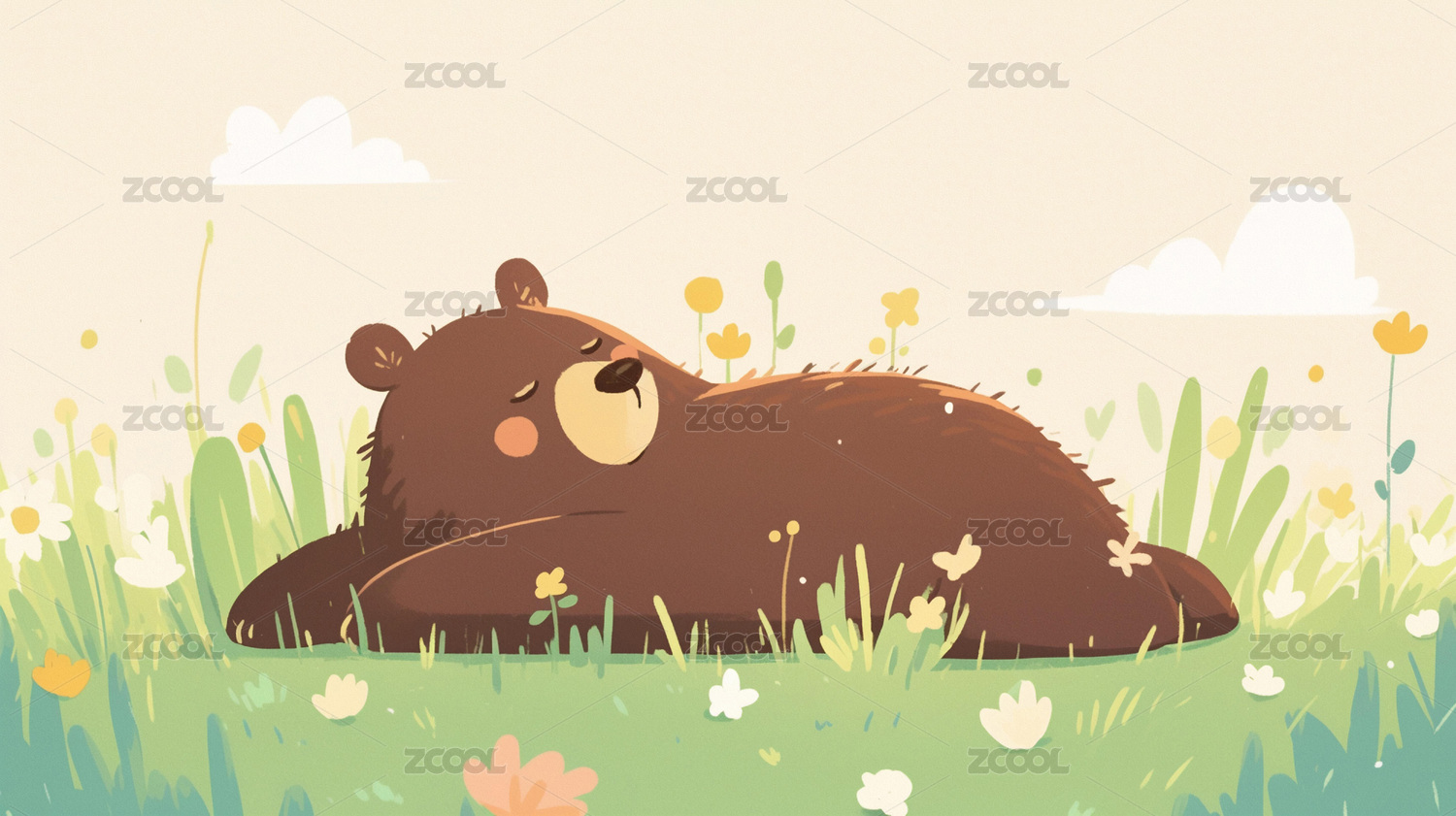 草地,治愈,扁平,小熊,插画,绿色,壁纸
