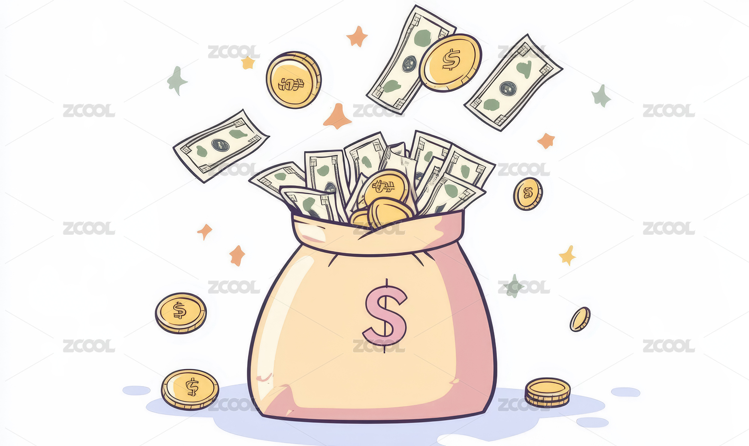 金钱袋里的飞舞钞票