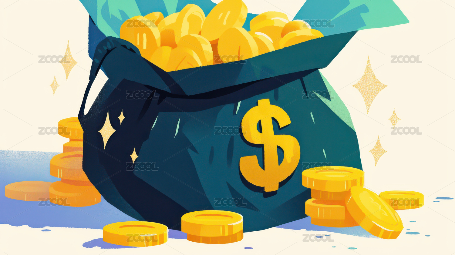 金币与美元符号的插画