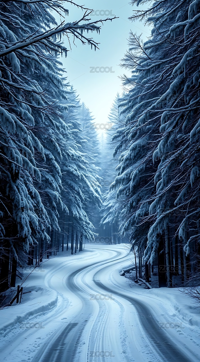冬日蜿蜒的道路雪景场景