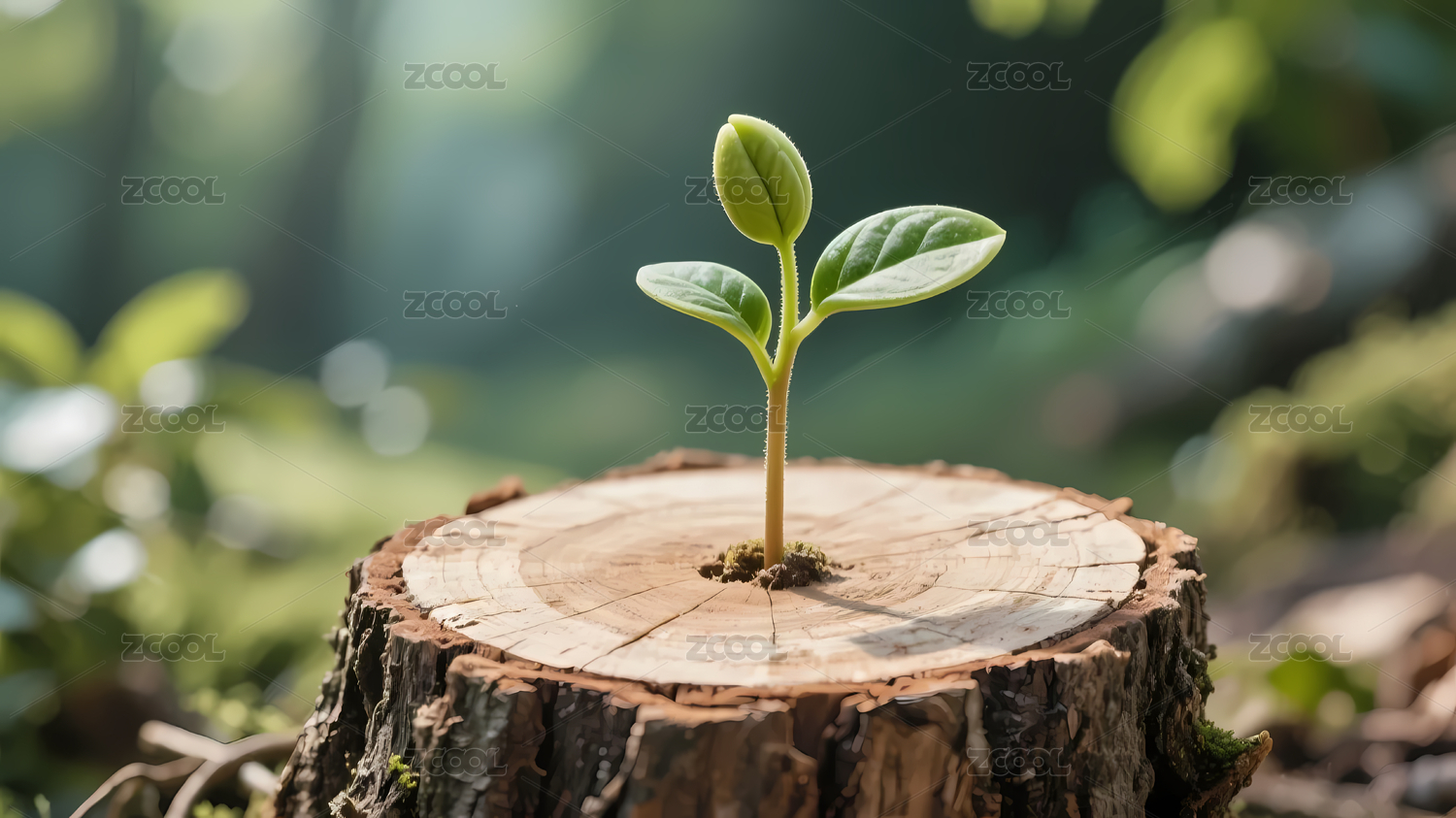 树桩嫩芽自然和谐景象