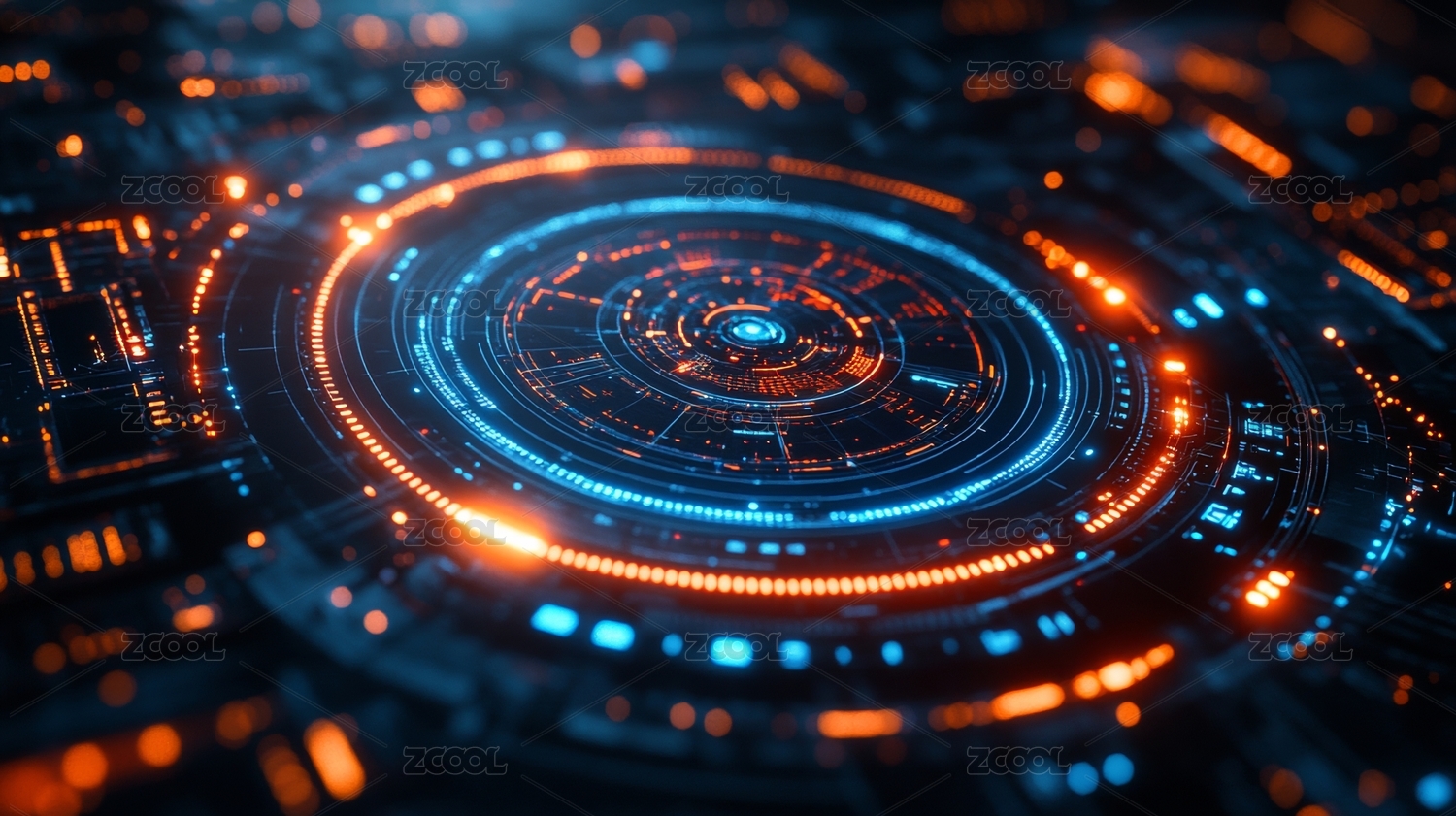 圆形,光效,科技感,蓝色,图案,插画,背景
