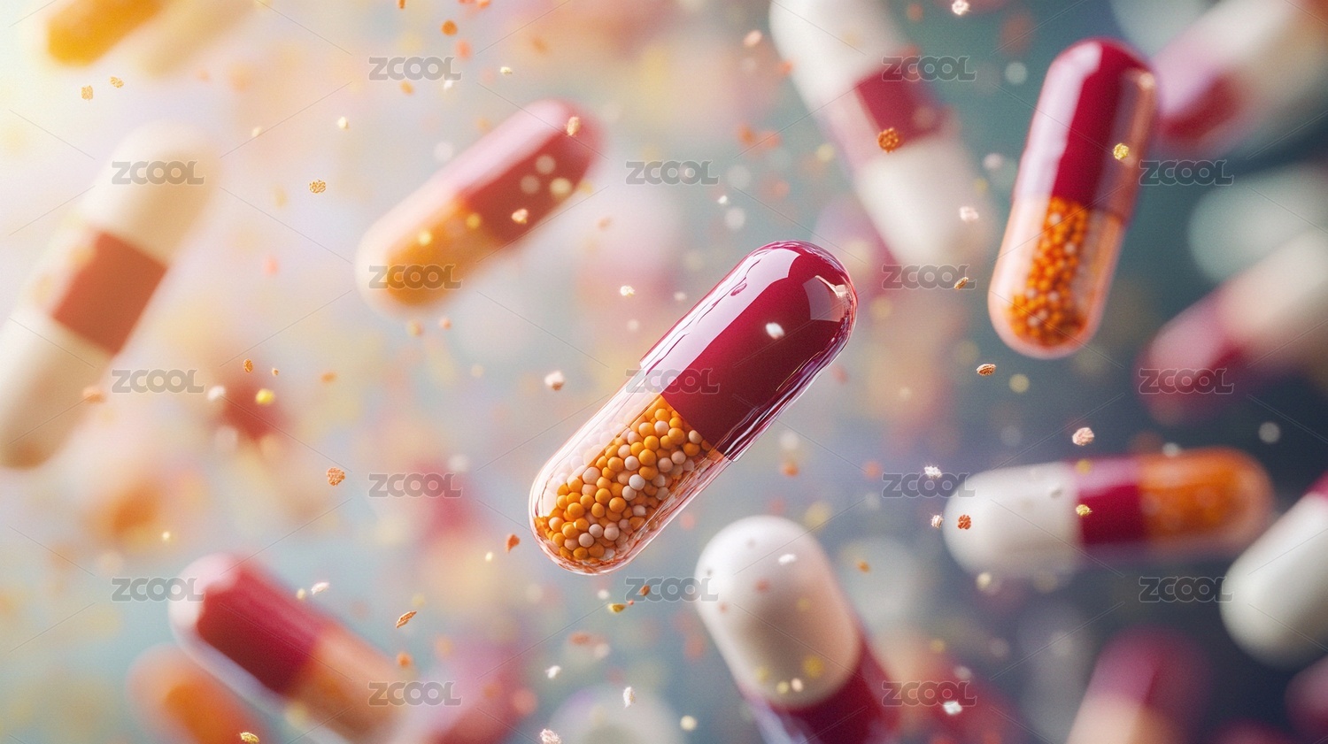 漂浮的彩色药丸胶囊