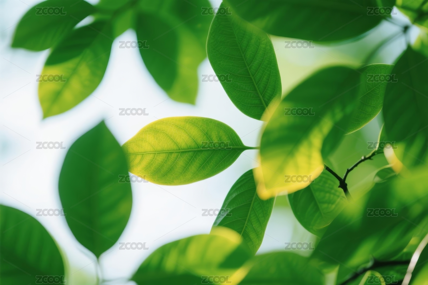 浅色背景的通透绿叶
