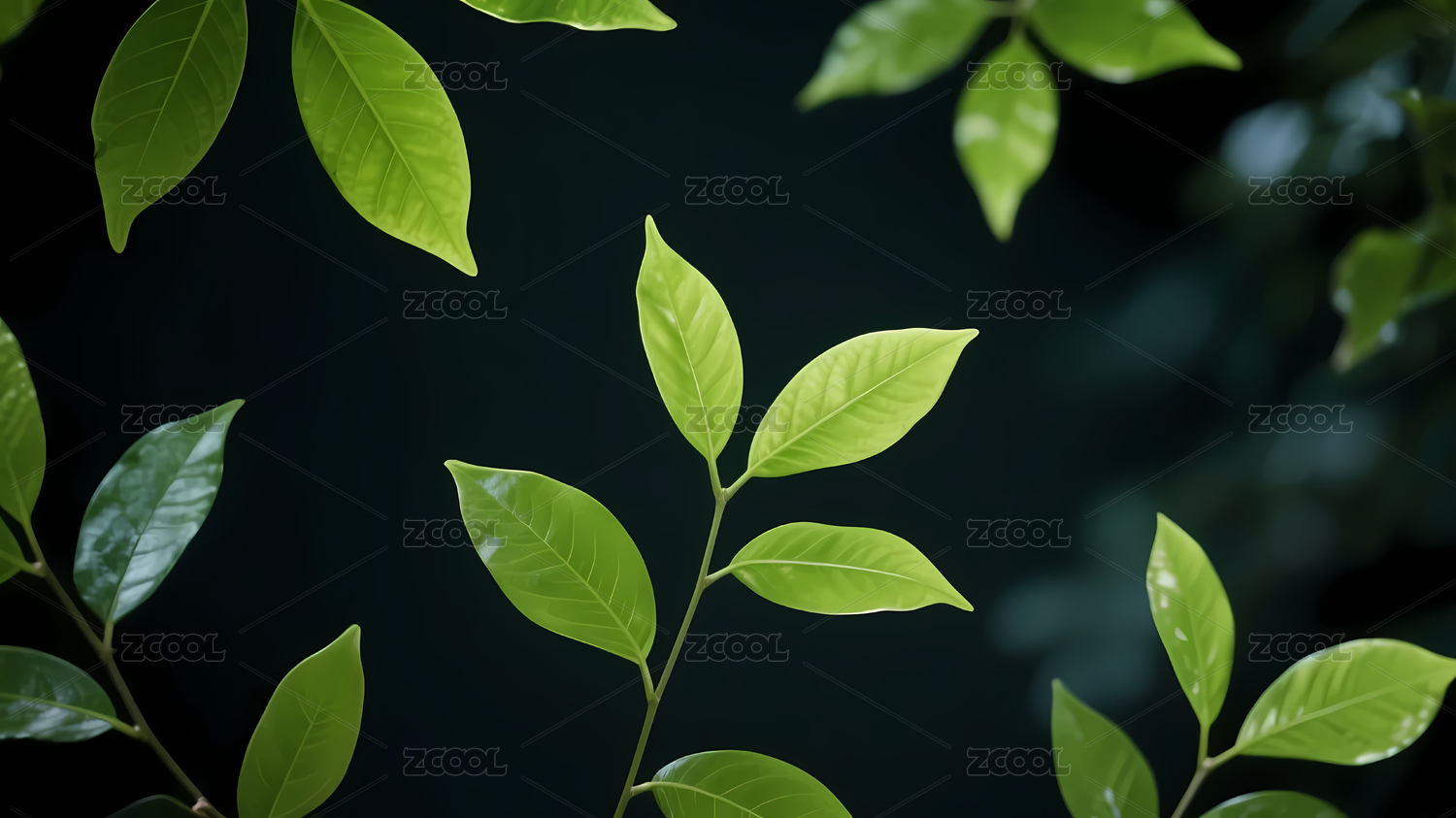 鲜亮绿色叶子黑背景