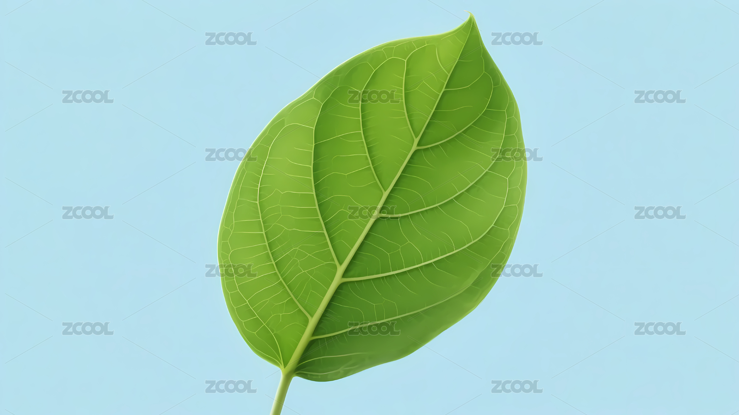 清新绿叶与浅蓝背景