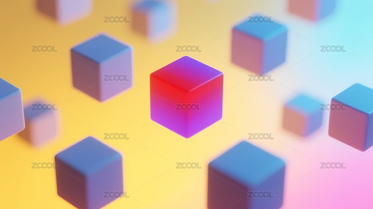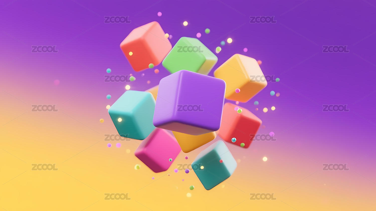 蓝色,橙色,绿色,紫色,漂浮,黄色,渐变,立方体,小点,多色