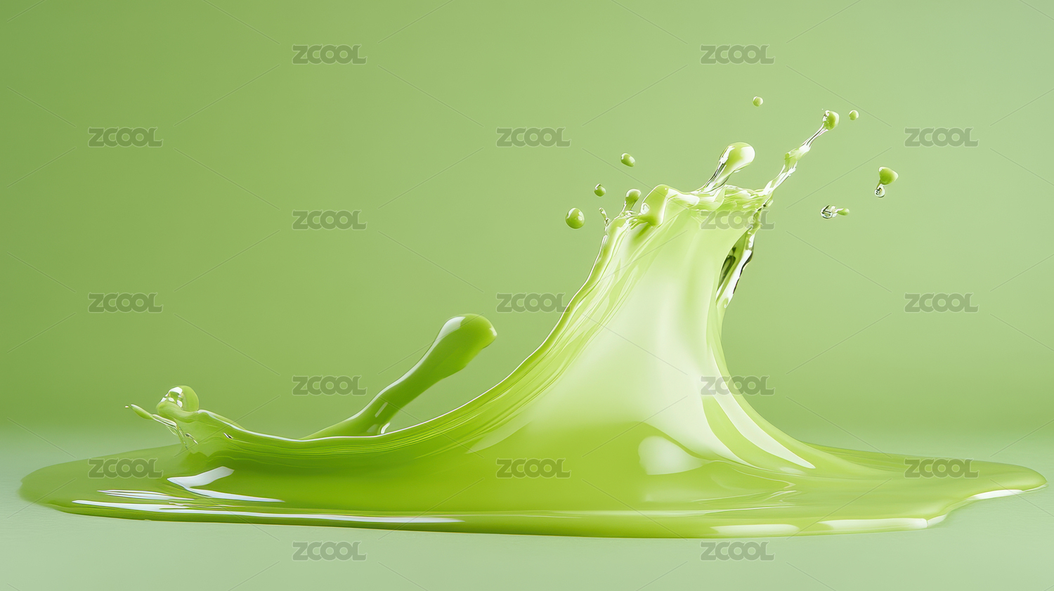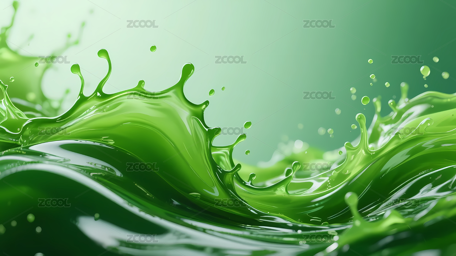 主视觉,场景,绿色,流体,亮泽,美妆,展示,色彩,流动,液态
