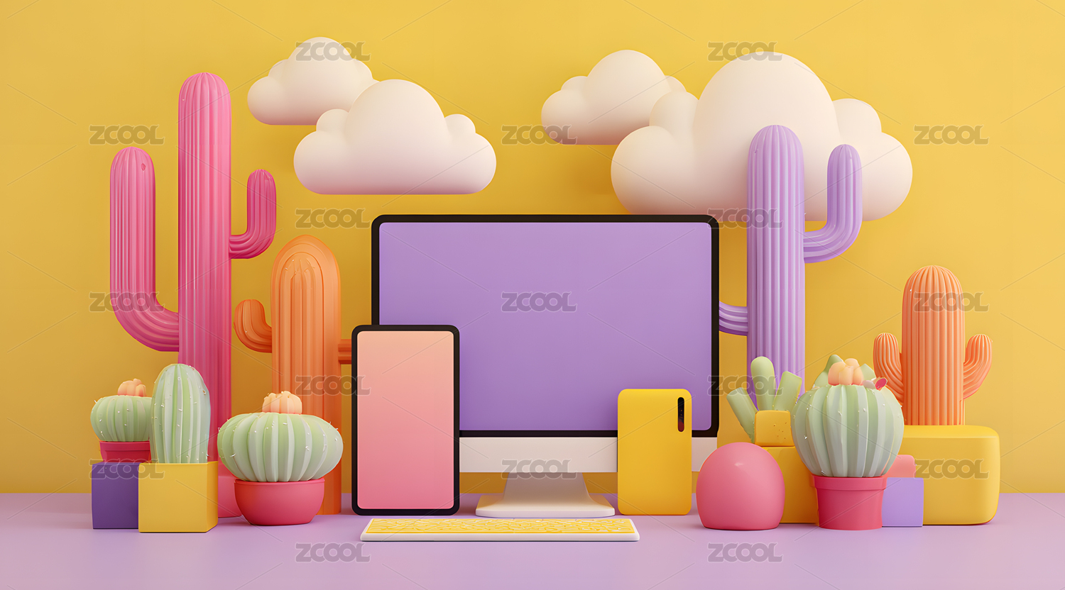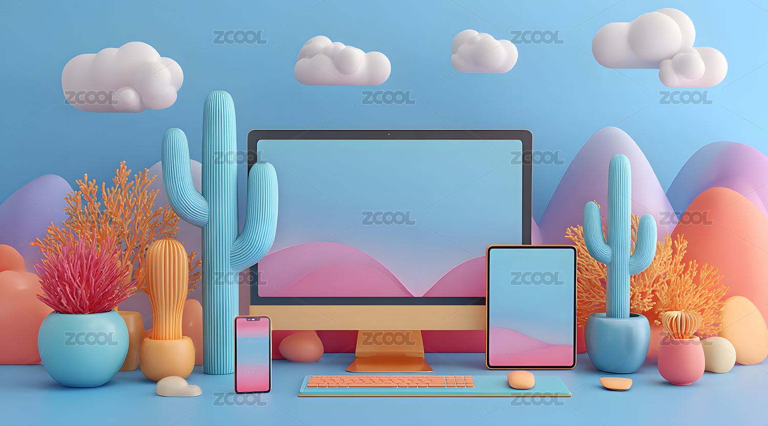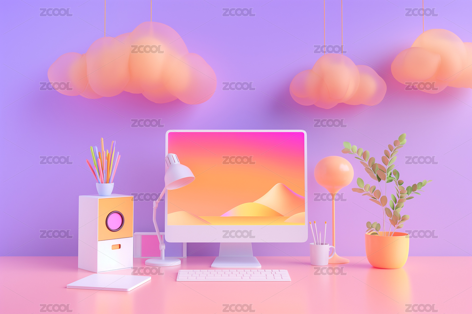 电脑,插画,柔和,3D,立体,壁纸,背景,画面,风格,现代