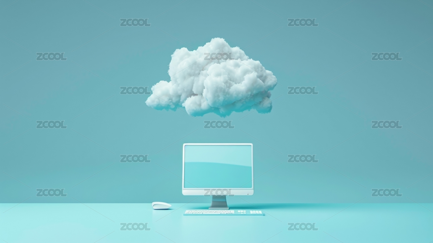 电脑屏幕中的发光云朵