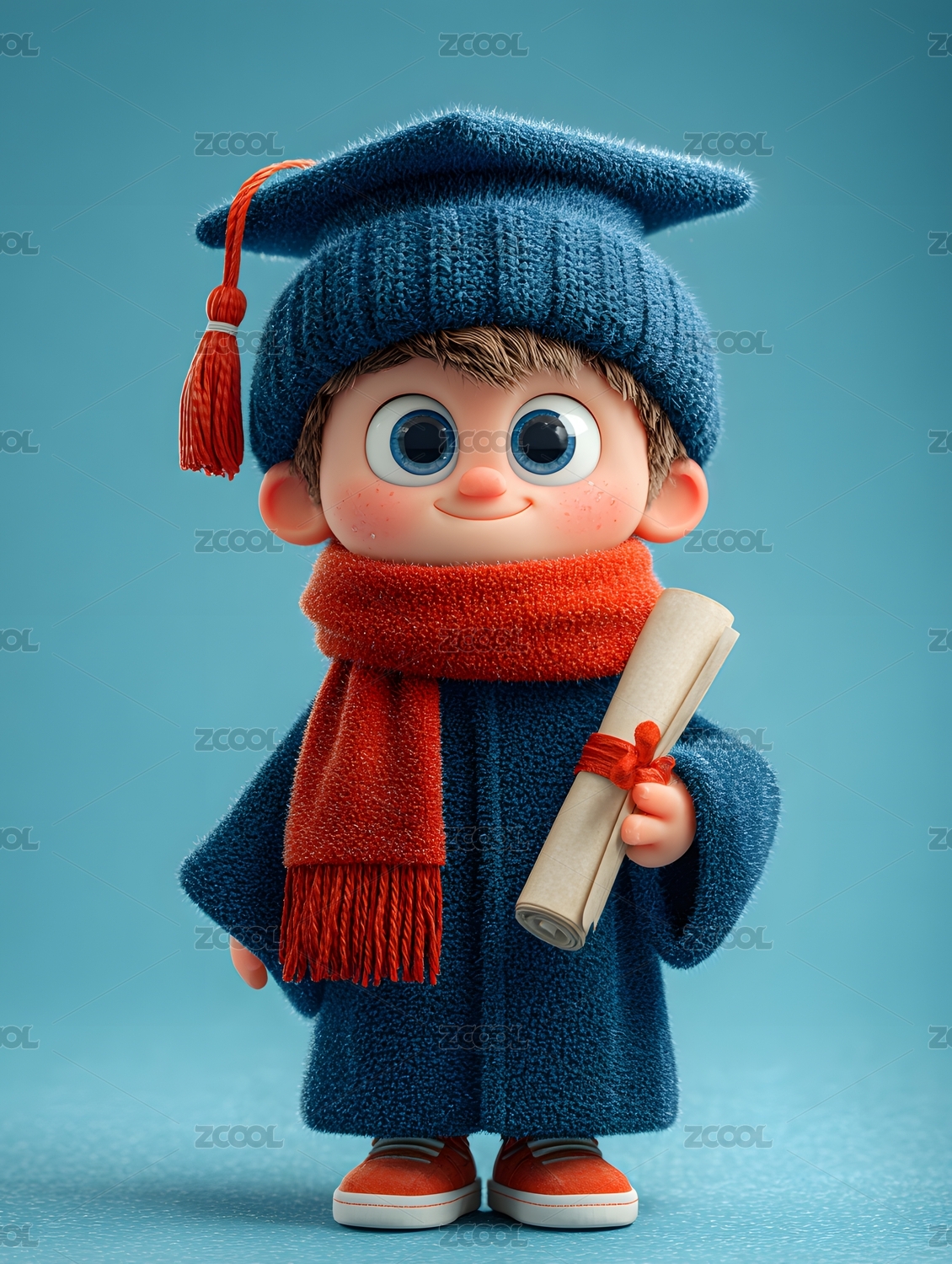 可爱卡通萌娃浅蓝毛衣男孩童趣形象3D插画