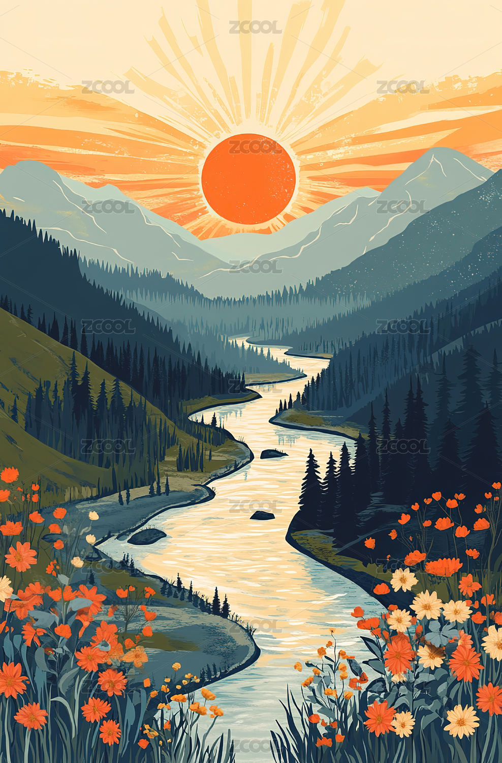 清新,风景,景色,河流,夕阳,宁静,自然,远山,近树,祥和