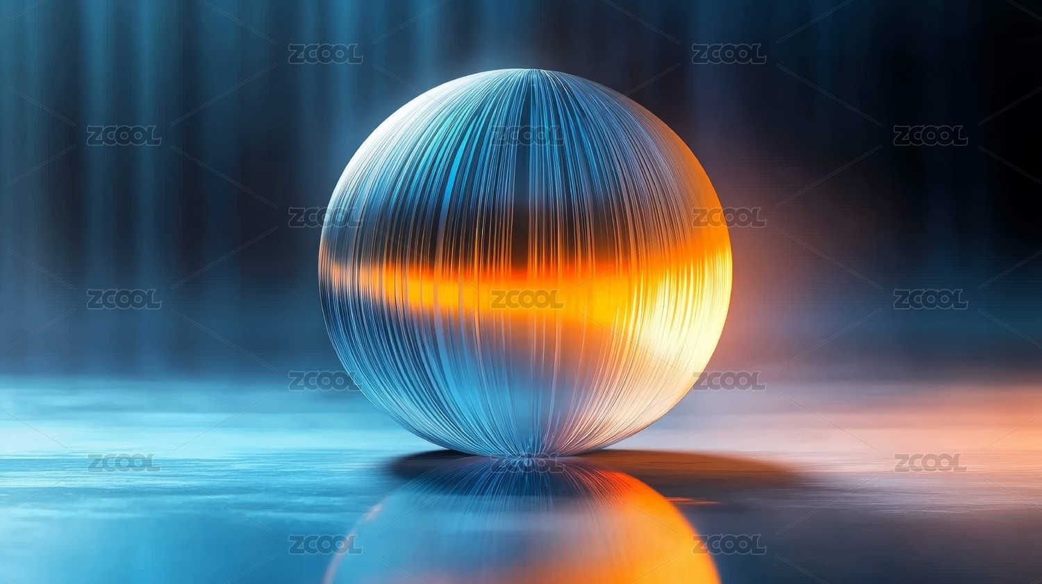 光带环绕的透明球体展现科技感