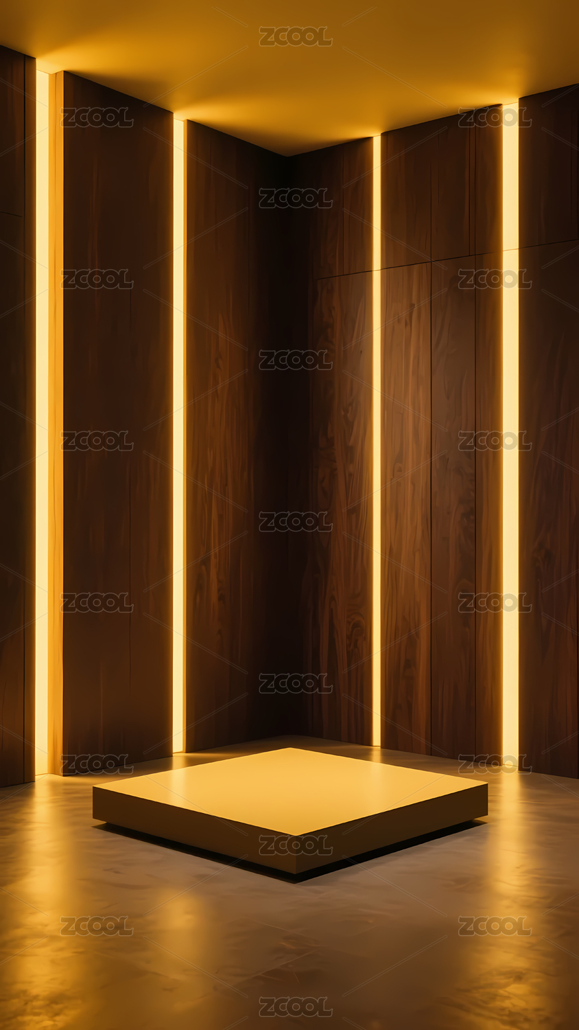 室内木地板与金色灯光