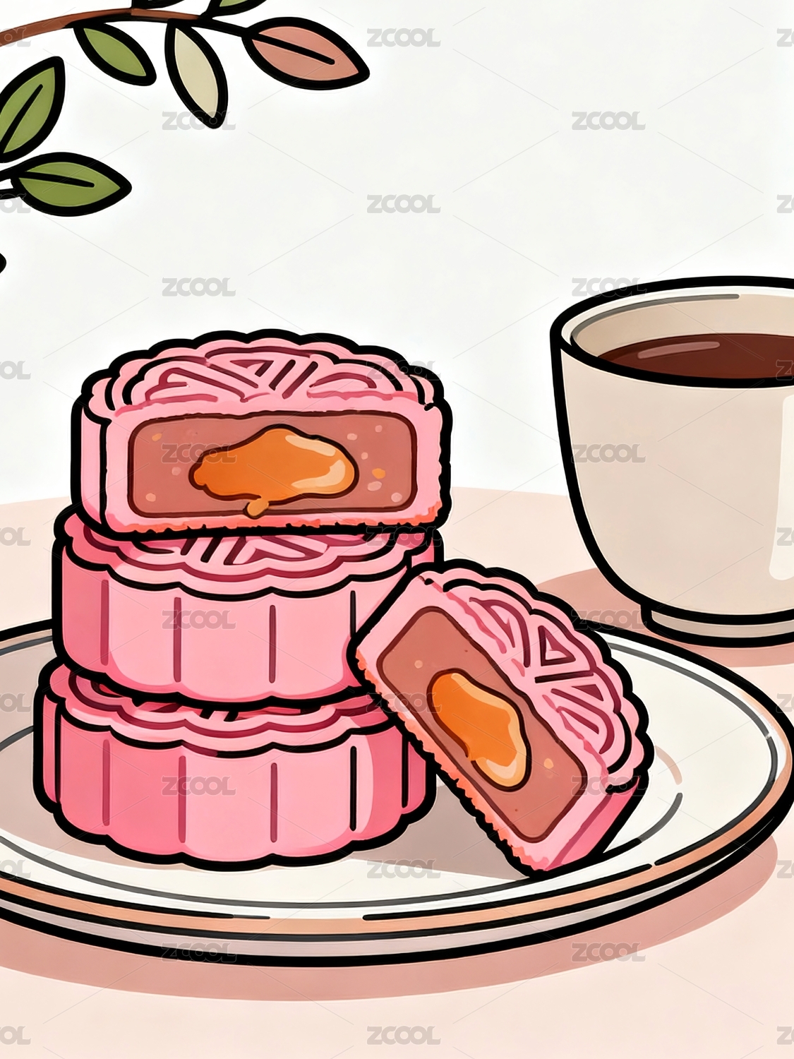 粉色月饼茶杯餐盘