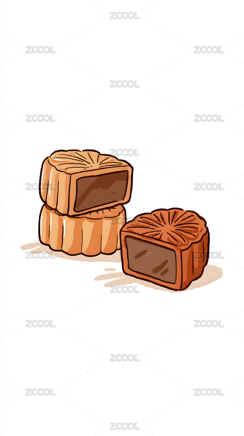 美味月饼堆叠艺术插画