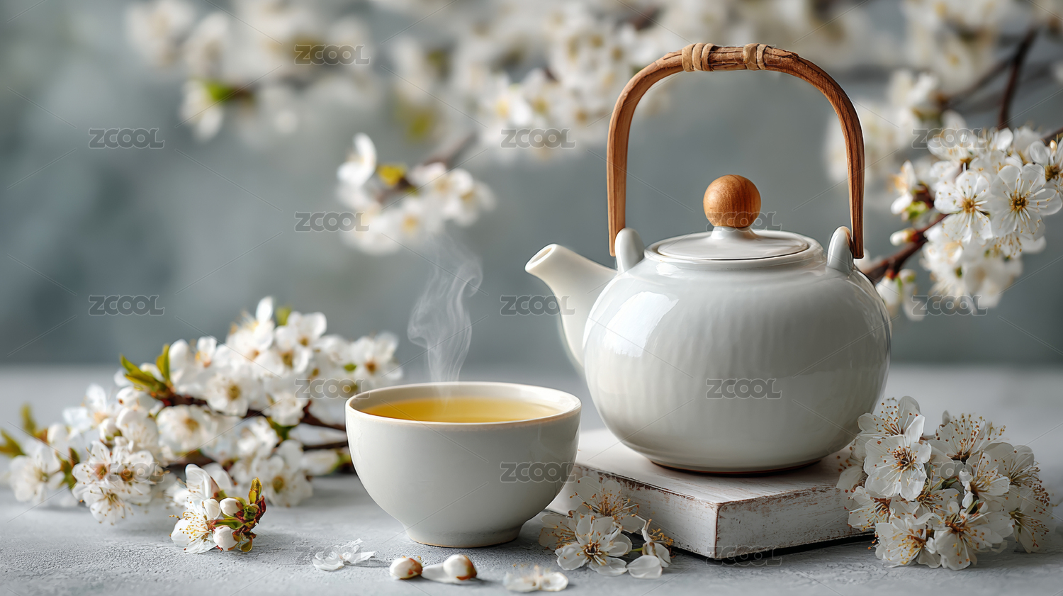 樱花茶杯静谧画面