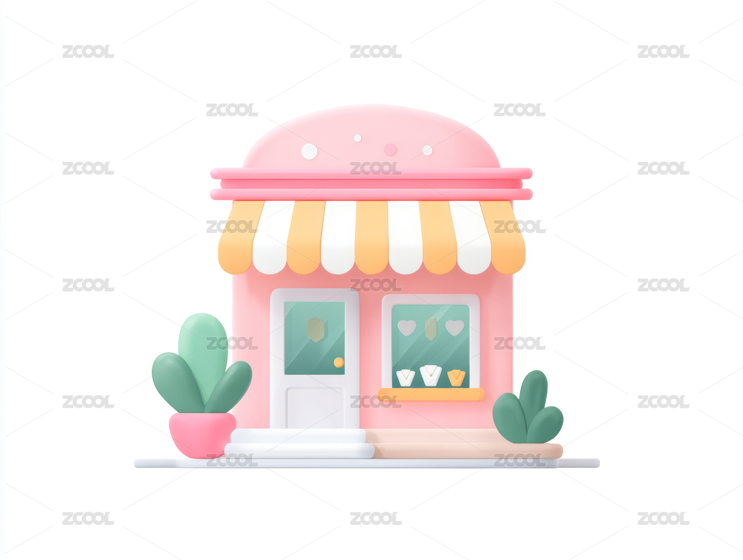 小店,门面,窗户,门,遮阳篷,仙人掌,建筑,简约,卡通