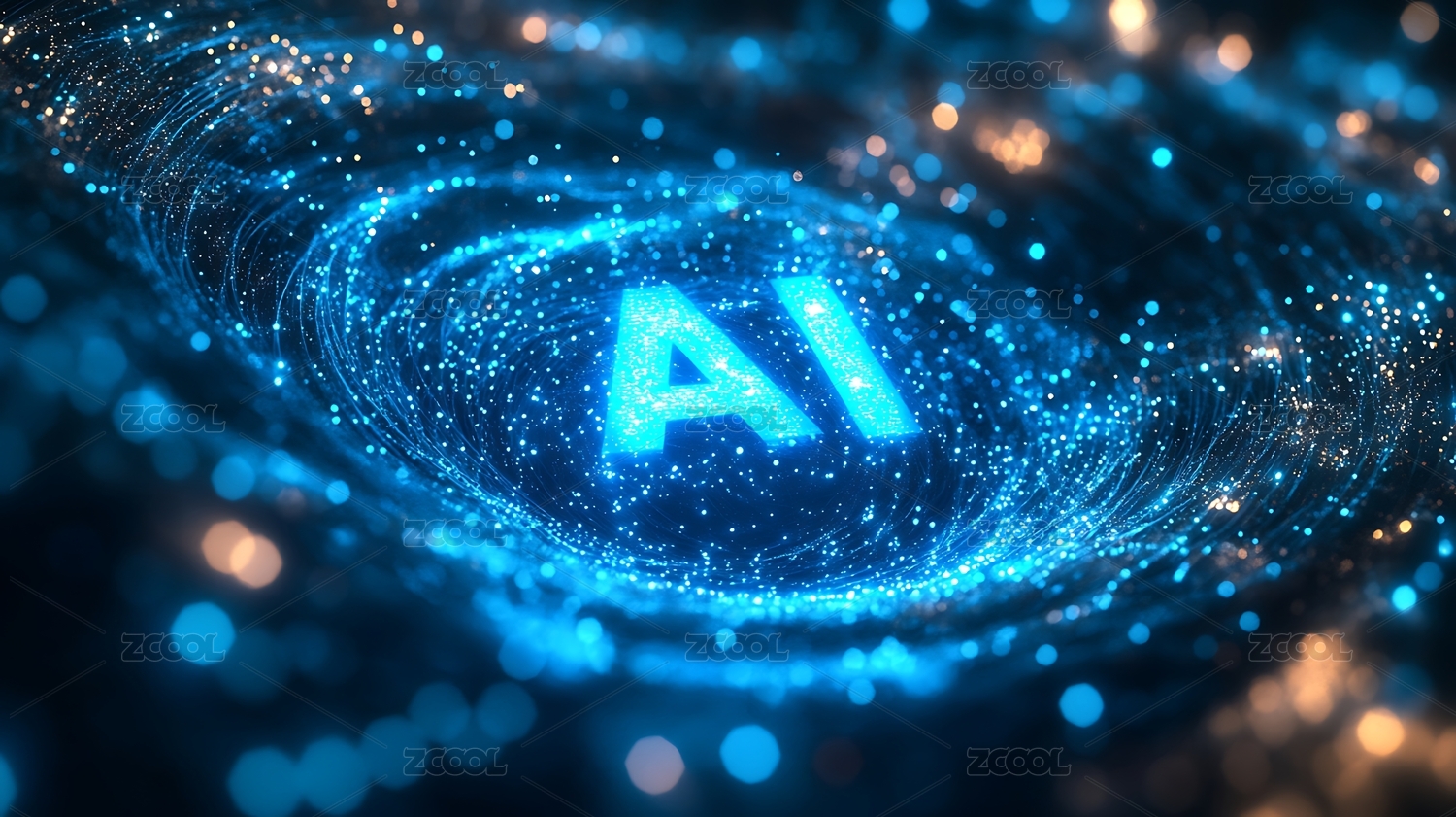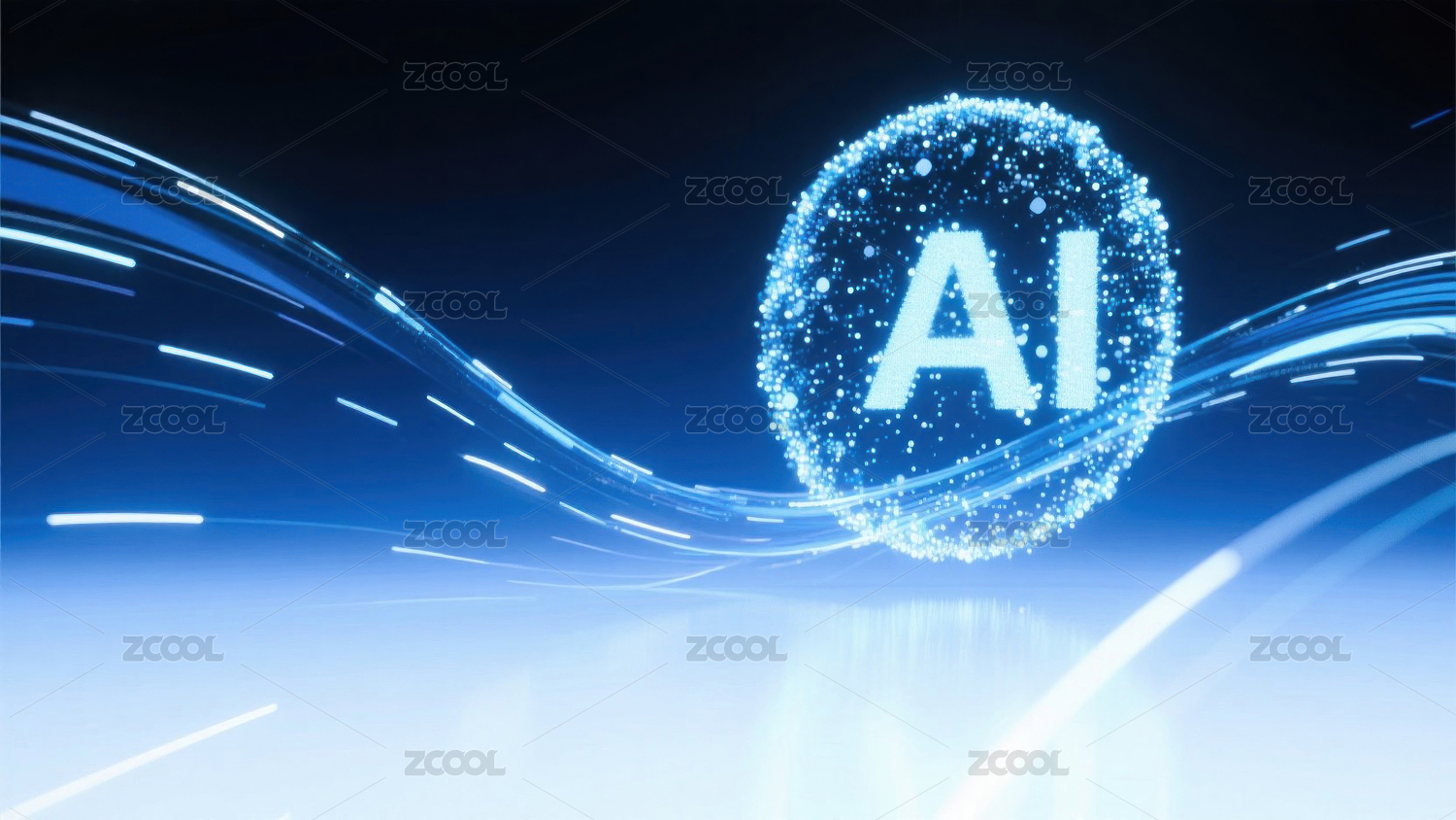 蓝色AI字样配光带粒子