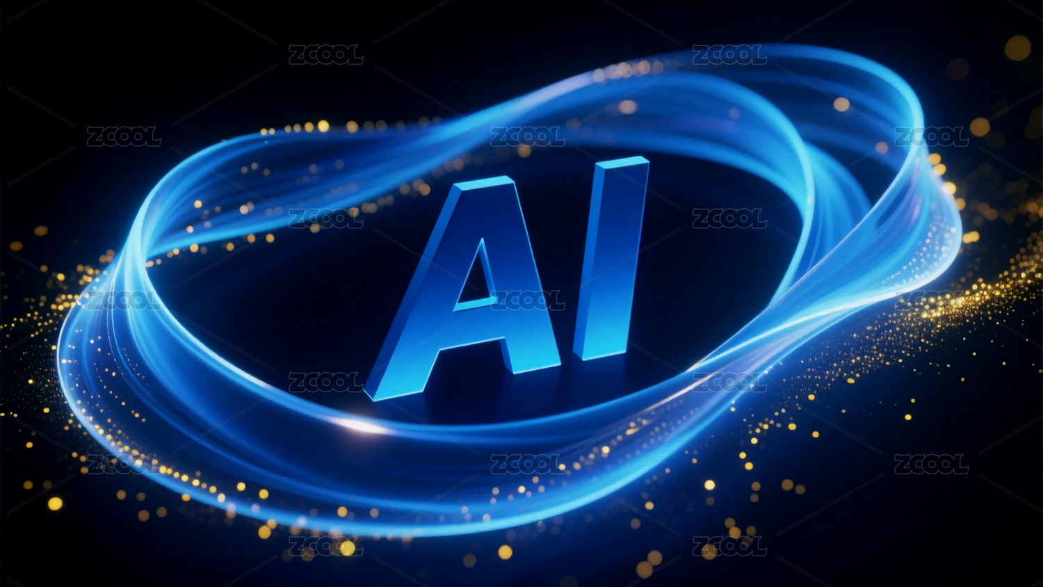 蓝色AI字样配金色光点