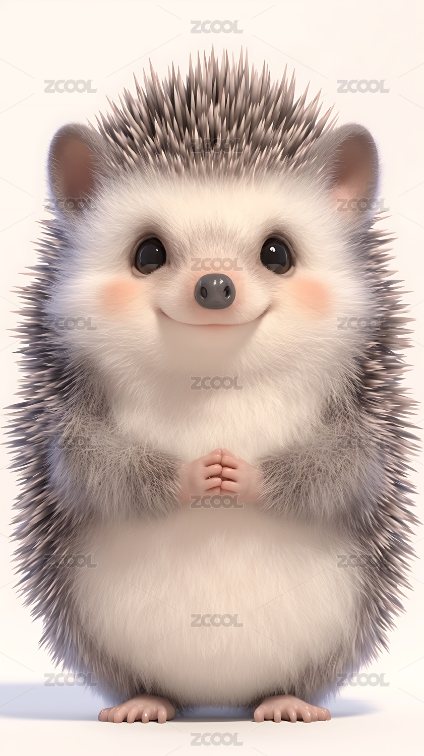 刺猬,可爱,卡通,毛茸茸,大眼睛,微笑,白色,背景,动物