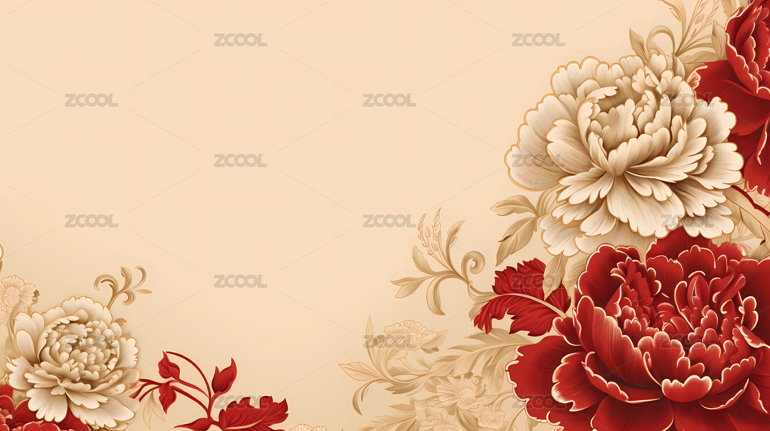 带有优雅中国传统牡丹花的金色新年喜庆背景