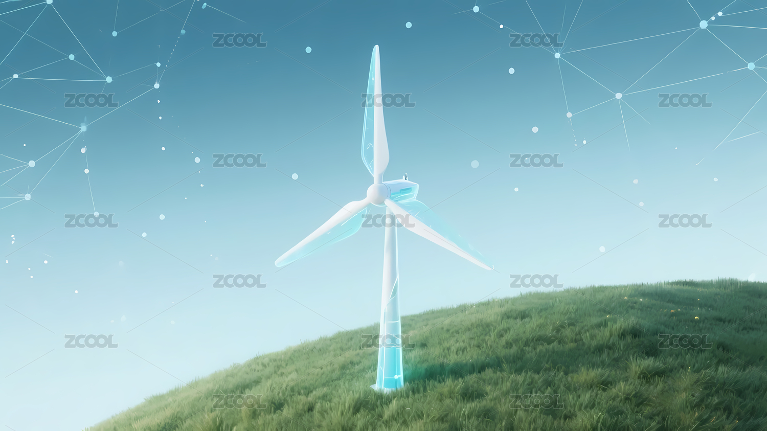线条,白色,科技,蓝天,草地,风力发电机,浅蓝色,光点,网络,田野