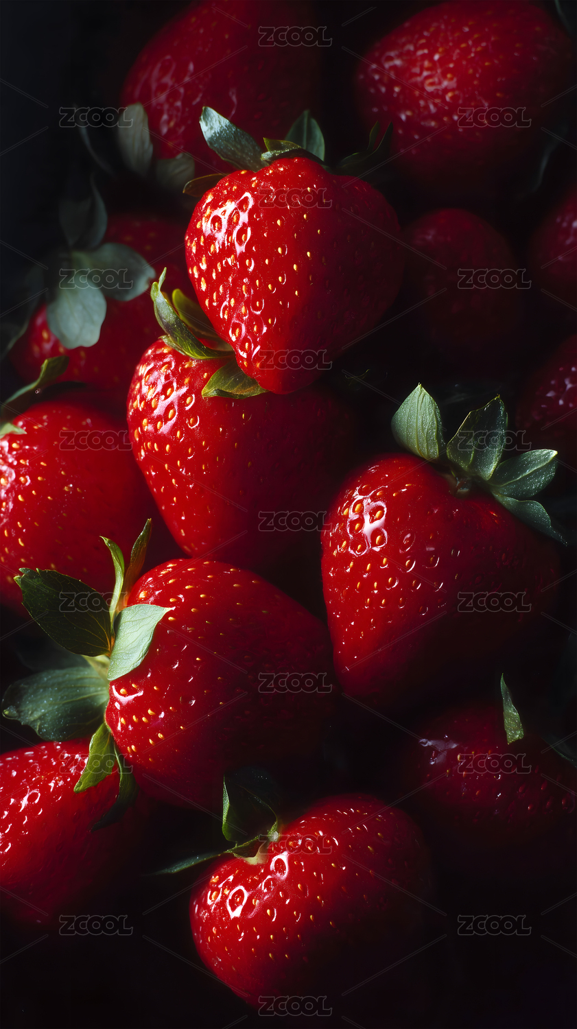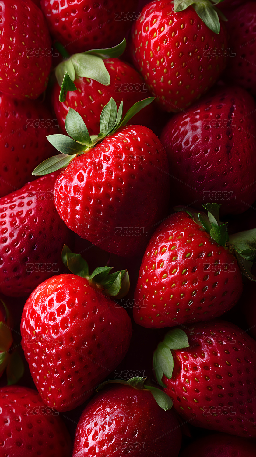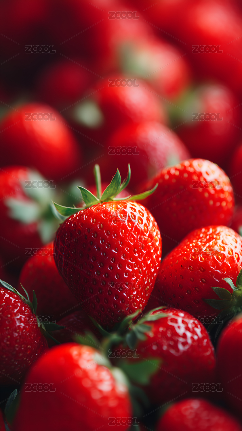 鲜艳草莓特写堆叠展示